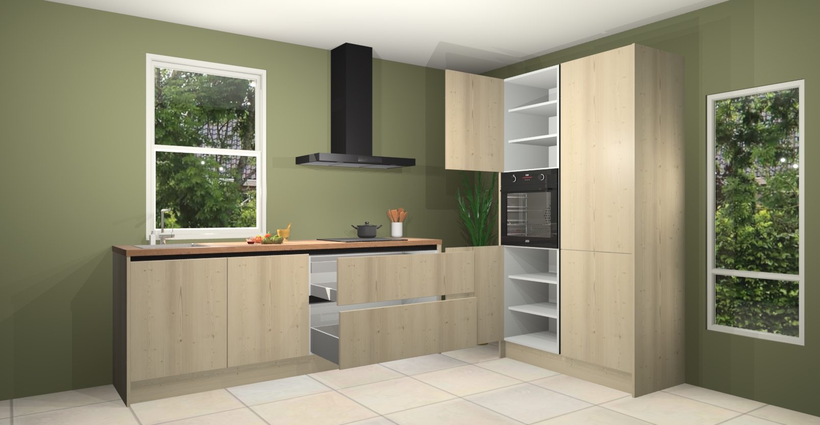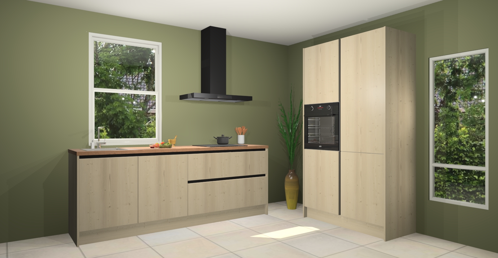 De Olm greeploze keuken Monaco heeft voldoende opbergruimte om uw keukenbenodigdheden georganiseerd en netjes te houden. Geniet van het gemak van de soft-close deuren, die deze stijlvolle look perfect afmaken. Maar dat is nog niet alles. Met de Olm greeploze keuken Monaco krijgt u maar liefst 5 ingebouwde apparaten: een oven, inductiekookplaat, afzuigkap, vaatwasser en koelkast. Deze kunnen gemakkelijk worden geüpgraded naar AEG als ze besteld zijn.