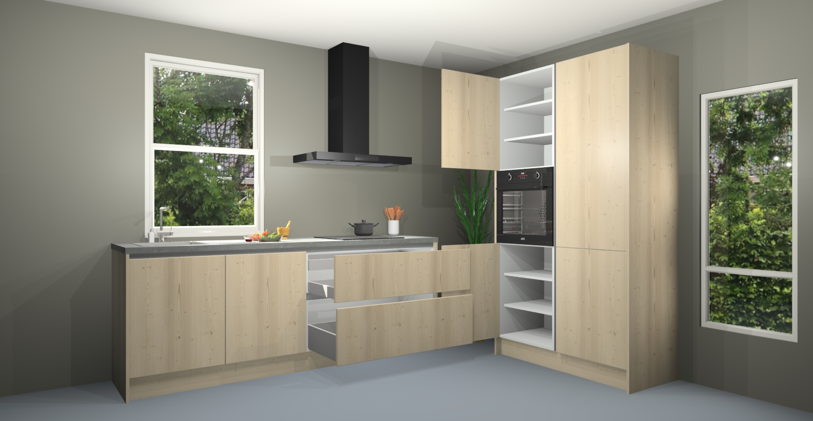 Inclusief plinten, stelpoten en werkblad