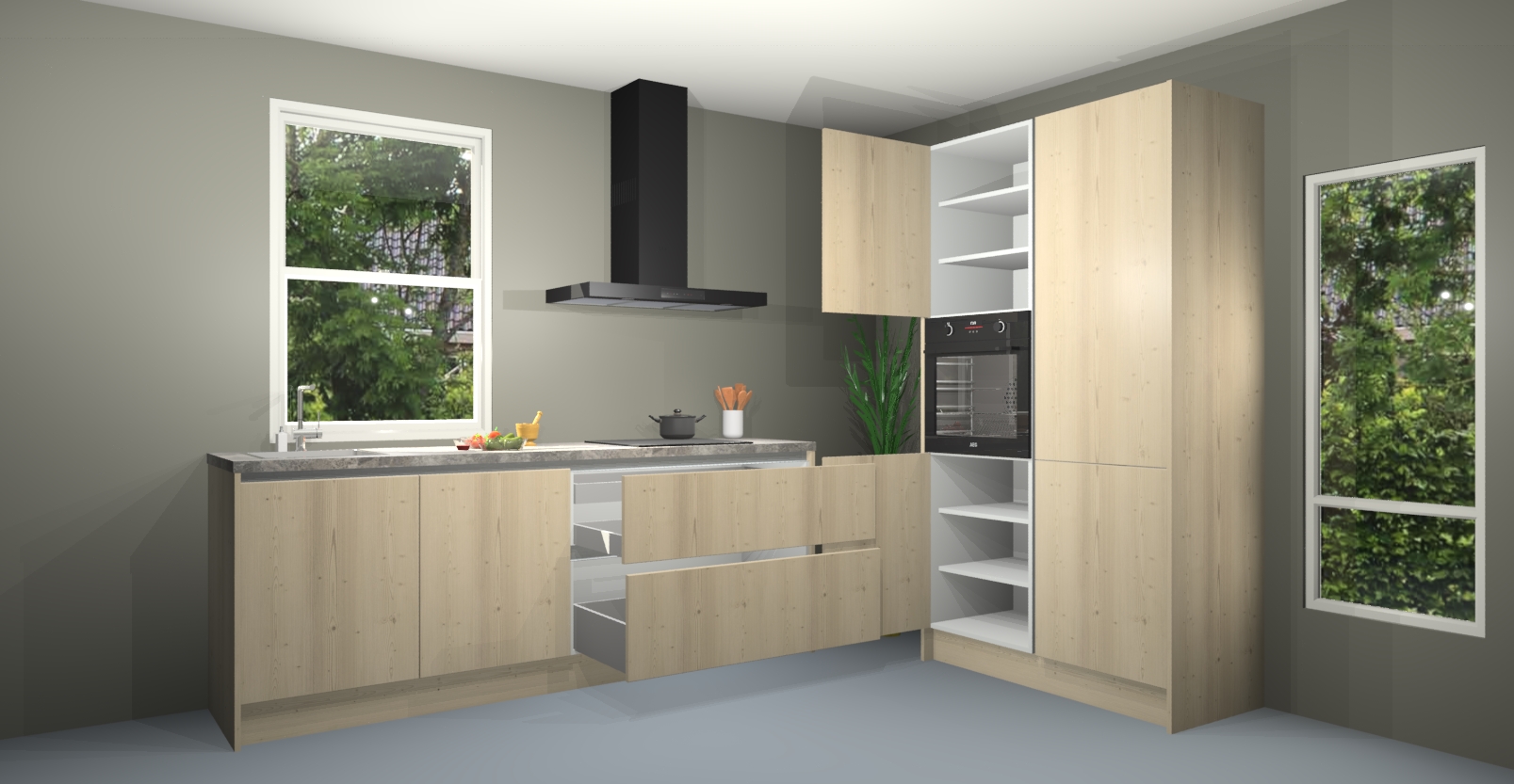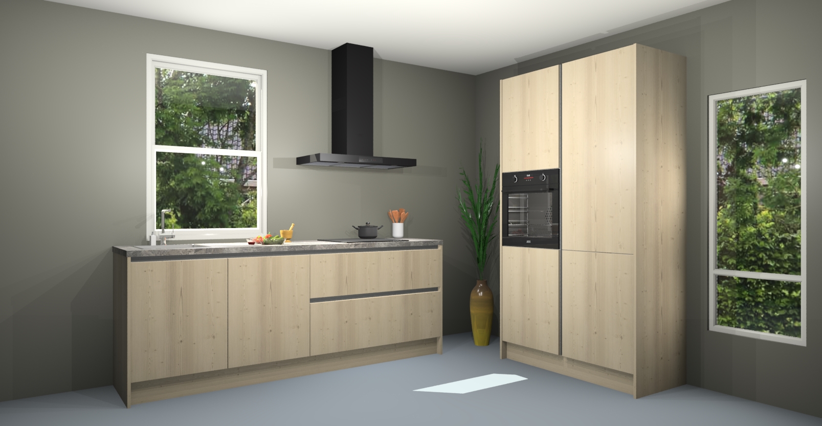 Ervaar het ultieme gevoel van warmte en gezelligheid in uw huis met de luxe Olm greeploze keuken Monaco! Deze ongelooflijk sfeervolle houtlook straalt heerlijke warmte uit en tovert elke keuken om tot een gezellig familiecentrum. Breng uw dromen tot leven met deze unieke keuken, ontworpen voor moeiteloze luxe en functionaliteit.