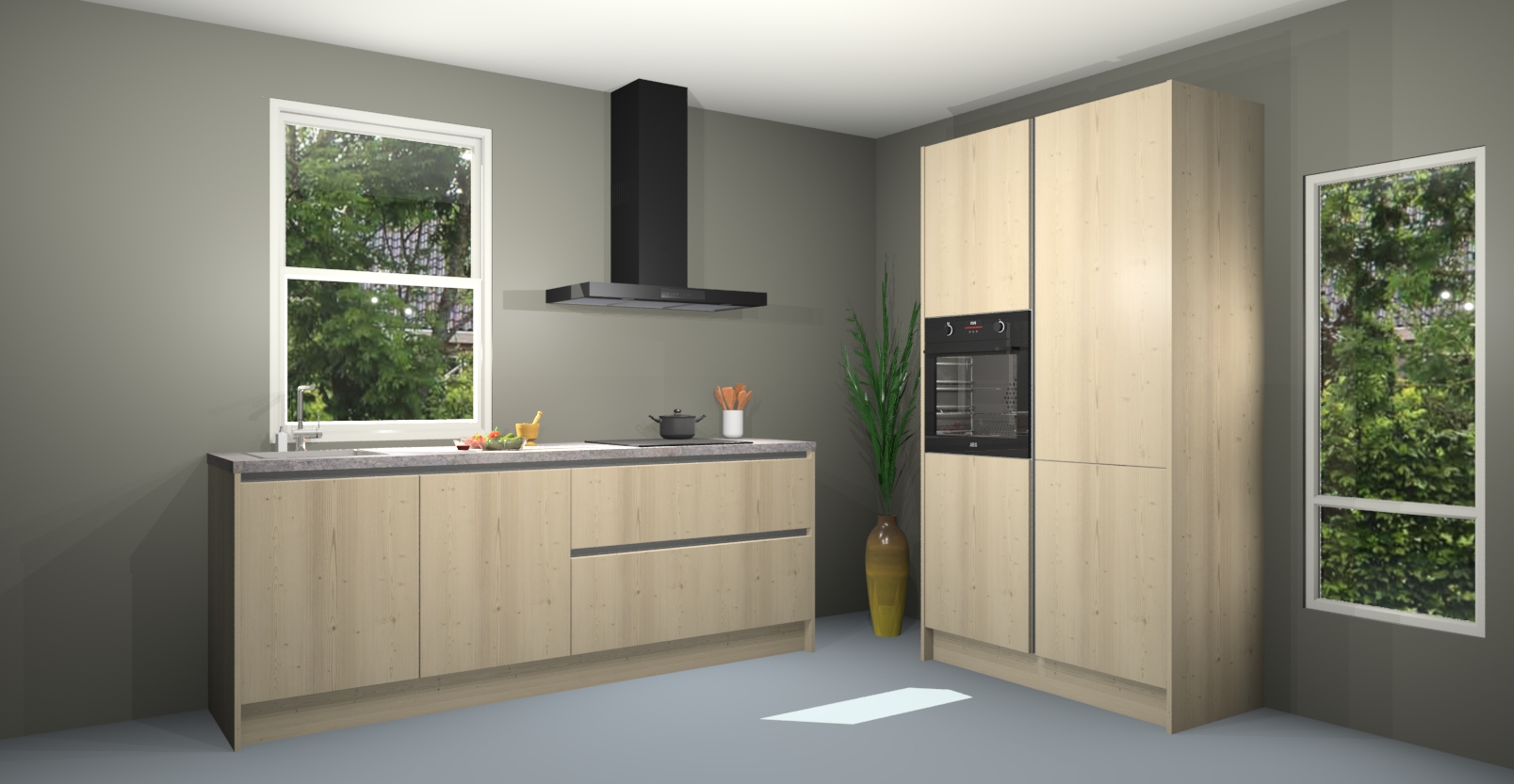 Ervaar het ultieme gevoel van warmte en gezelligheid in uw huis met de luxe Olm greeploze keuken Monaco! Deze ongelooflijk sfeervolle houtlook straalt heerlijke warmte uit en tovert elke keuken om tot een gezellig familiecentrum. Breng uw dromen tot leven met deze unieke keuken, ontworpen voor moeiteloze luxe en functionaliteit.