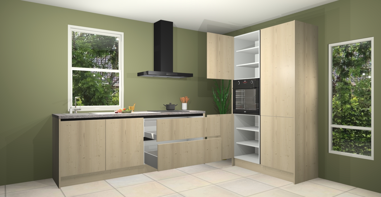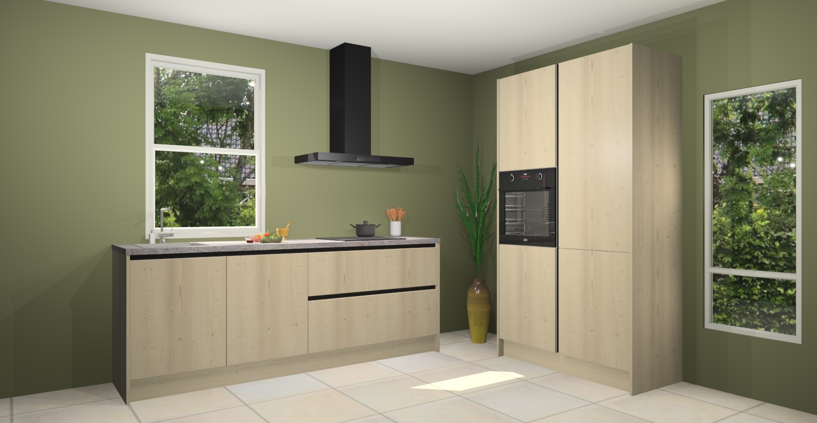 Ervaar het ultieme gevoel van warmte en gezelligheid in uw huis met de luxe Olm greeploze keuken Monaco! Deze ongelooflijk sfeervolle houtlook straalt heerlijke warmte uit en tovert elke keuken om tot een gezellig familiecentrum. Breng uw dromen tot leven met deze unieke keuken, ontworpen voor moeiteloze luxe en functionaliteit.