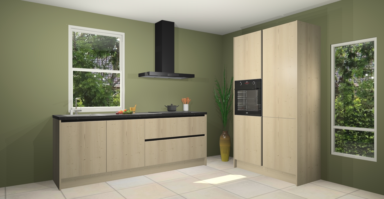Ervaar het ultieme gevoel van warmte en gezelligheid in uw huis met de luxe Olm greeploze keuken Monaco! Deze ongelooflijk sfeervolle houtlook straalt heerlijke warmte uit en tovert elke keuken om tot een gezellig familiecentrum. Breng uw dromen tot leven met deze unieke keuken, ontworpen voor moeiteloze luxe en functionaliteit.