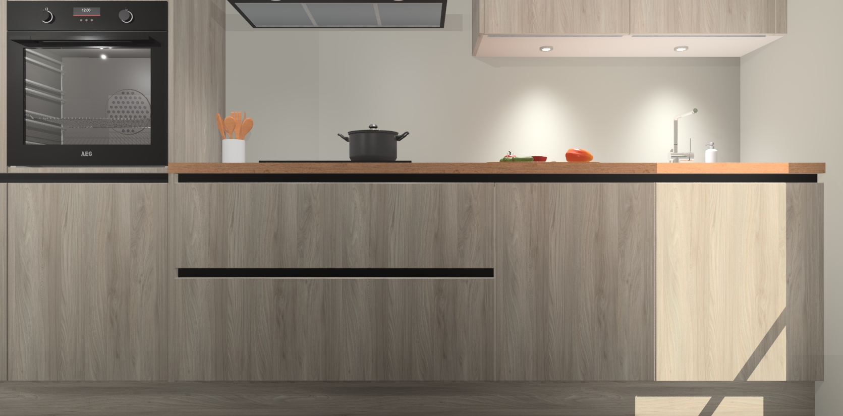 In deze box zijn alle kleuren verzameld van de deuren en werkbladen. Vraag de gratis kleurenbox aan en kijk thuis rustig verder!