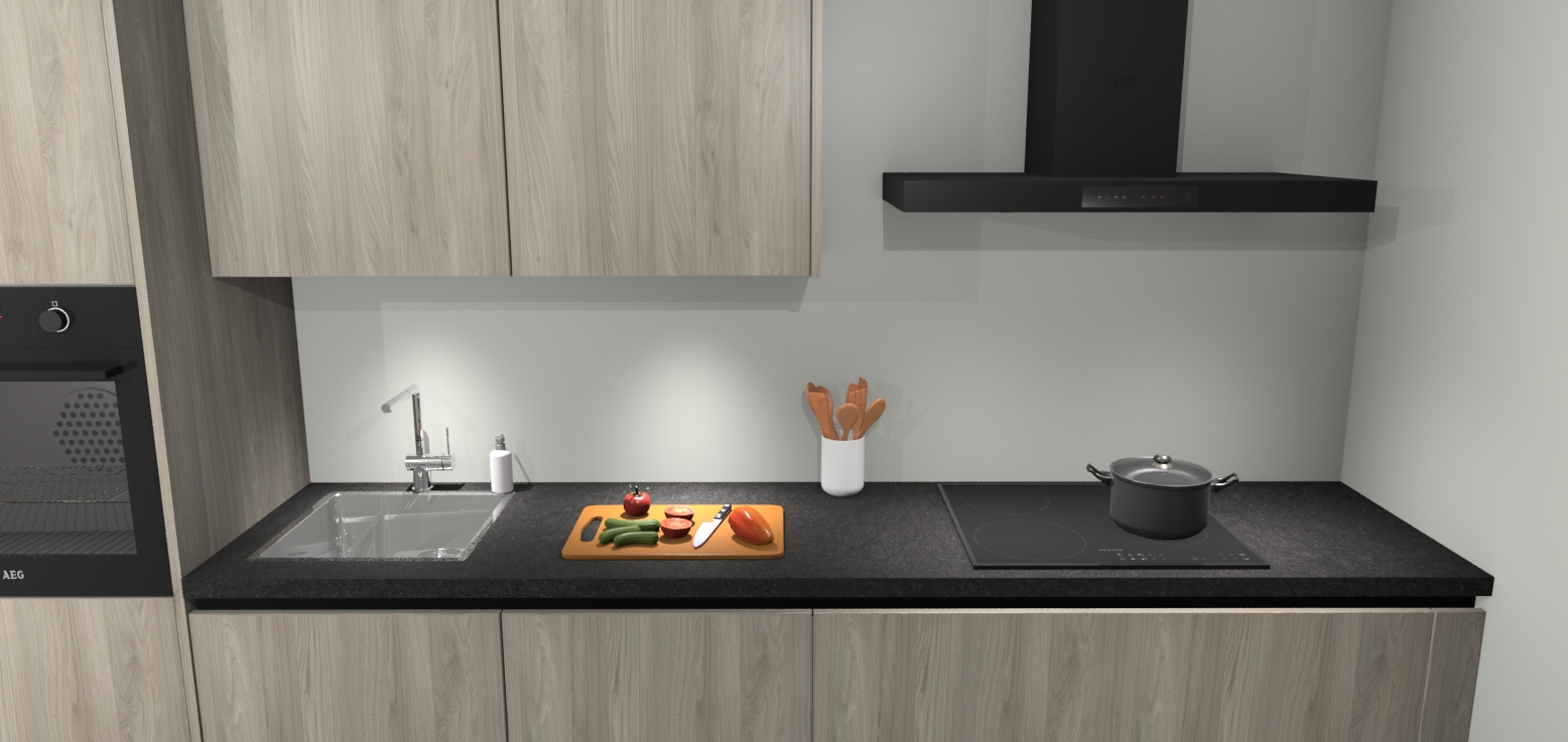 - Uitsparing van kookplaat, spoelbak en kraan dient u zelf te verzorgen.