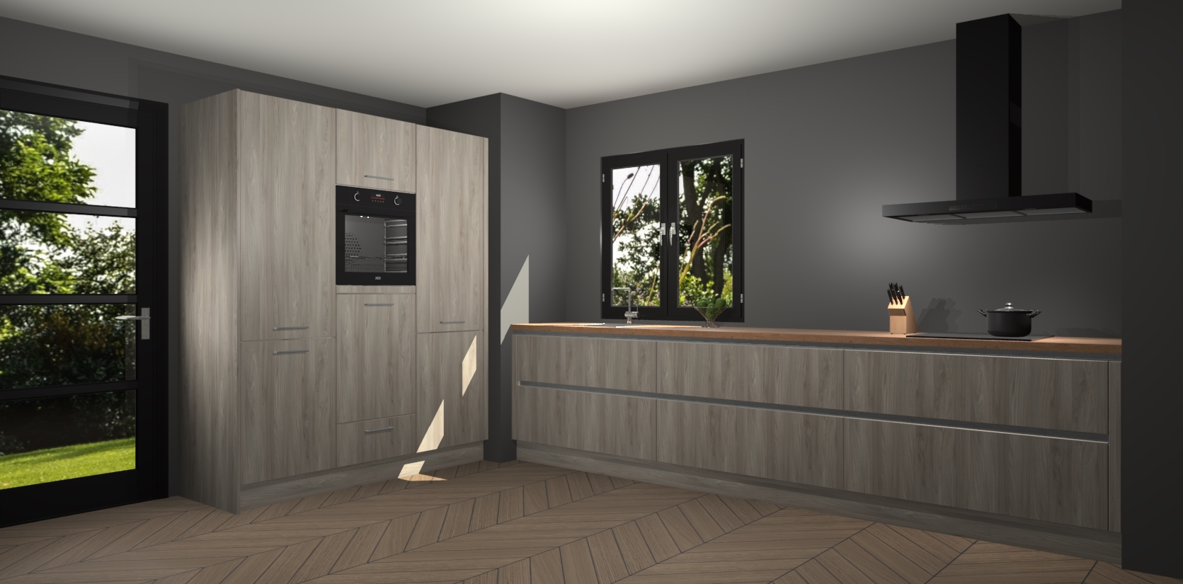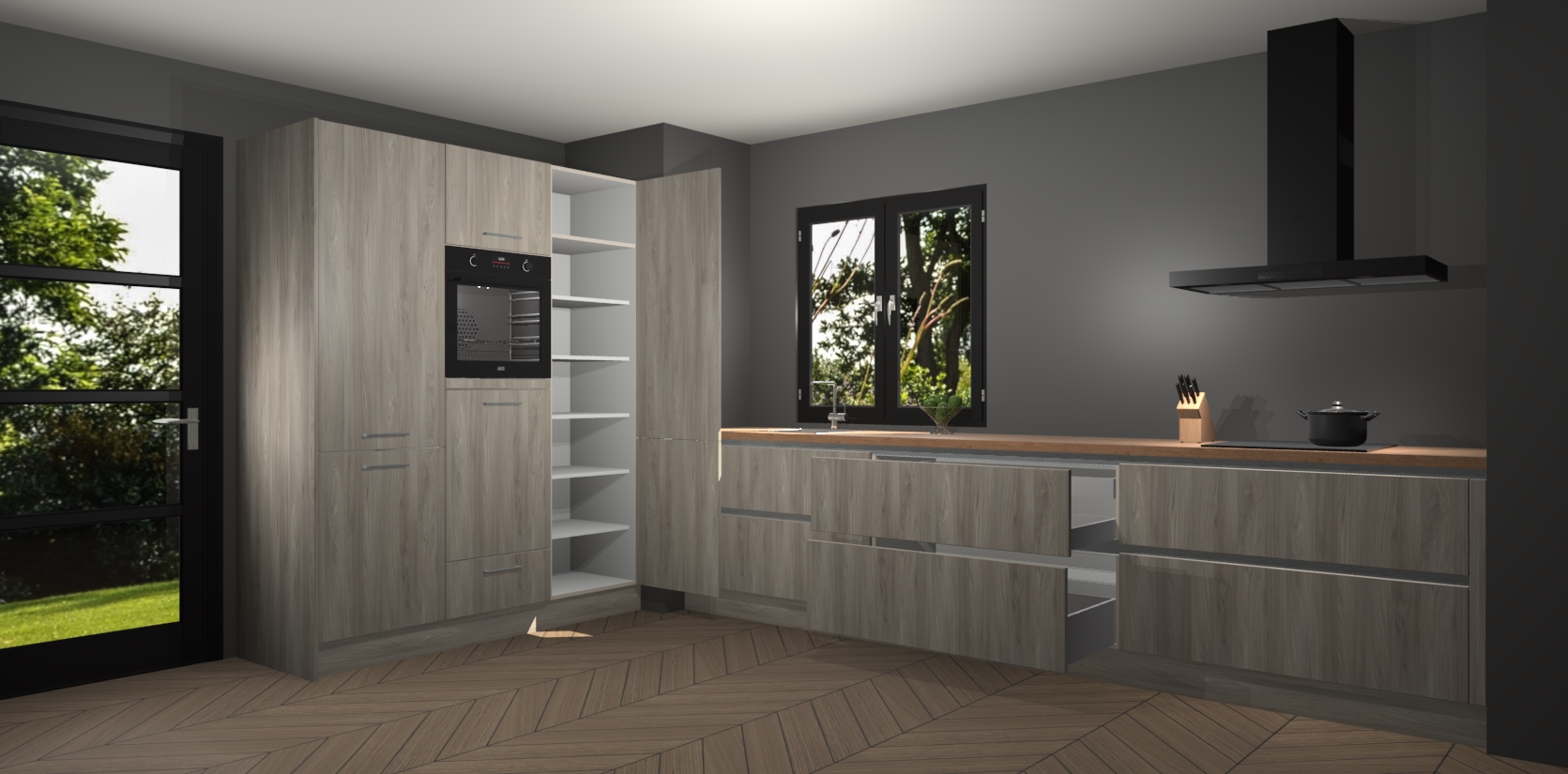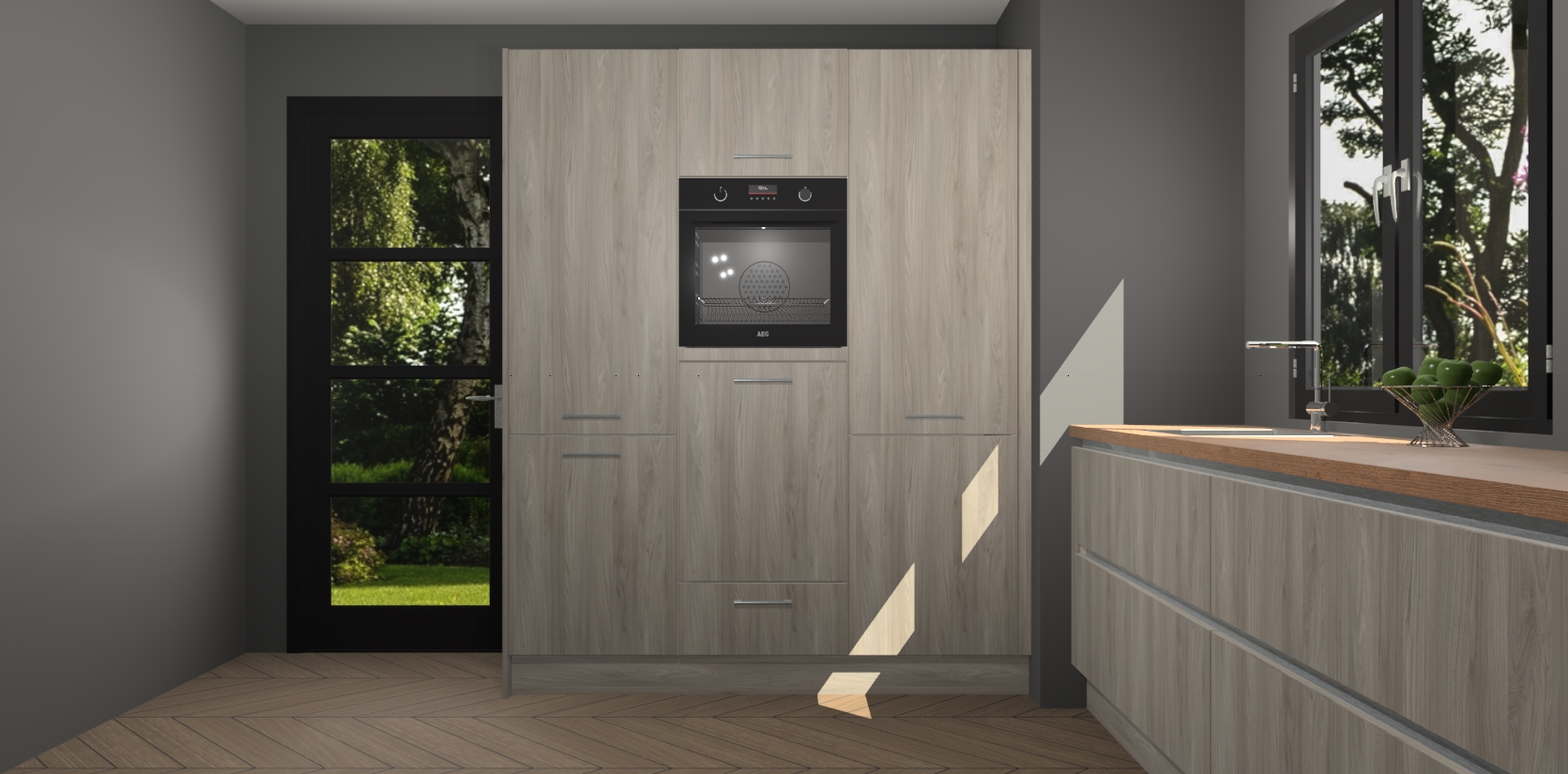 De softclose deuren openen en sluiten is ook heel eenvoudig - geniet van een moeiteloze keukenervaring, zelfs als er kinderen rondlopen. Voor extra gemak bij het plaatsen van uw bestelling bieden we ook een upgrade naar een kookplaat met geïntegreerde afzuiging.
