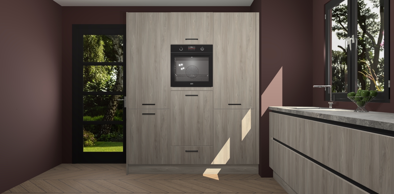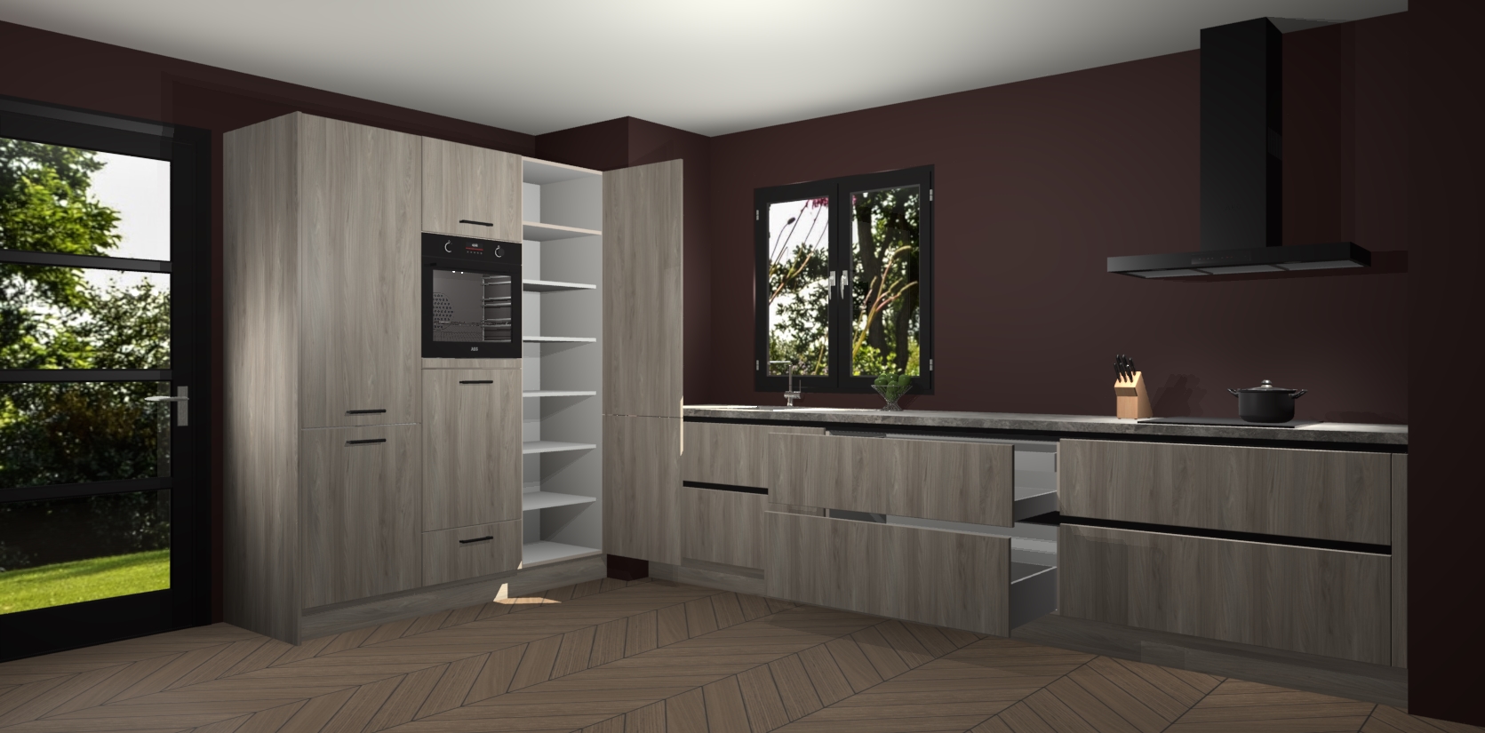 De softclose deuren openen en sluiten is ook heel eenvoudig - geniet van een moeiteloze keukenervaring, zelfs als er kinderen rondlopen. Voor extra gemak bij het plaatsen van uw bestelling bieden we ook een upgrade naar een kookplaat met geïntegreerde afzuiging.