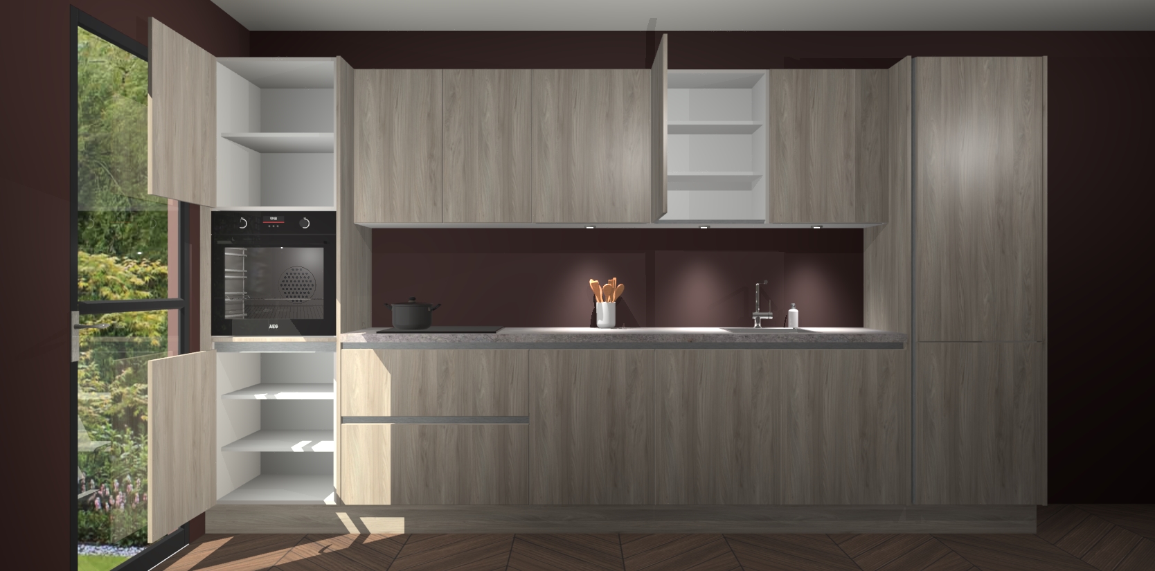 Welkom bij de olm greeploze keuken Wels - waar luxe en chic wonen nog nooit zo betaalbaar is geweest! Deze strakke rechte keuken is perfect voor elk huishouden en biedt een indrukwekkende hoeveelheid opbergruimte voor al uw behoeften. Bovendien zijn de kasten in de fabriek voor gemonteerd, zodat u binnen mum van tijd kunt genieten van uw langverwachte keukendromen.