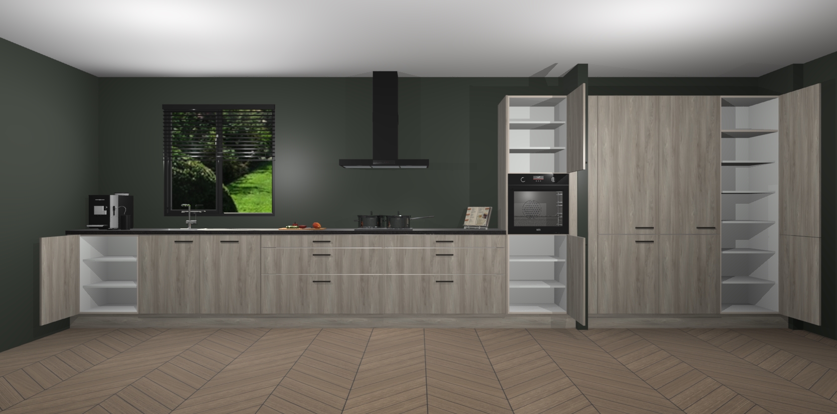 Een stijlvolle en praktische keuken als deze mag gezien worden. Dankzij de prachtige matte afwerking wordt de keuken gemakkelijk het middelpunt van uw huis - hij ziet er geweldig uit onder allerlei lichtomstandigheden, van dag tot nacht!
