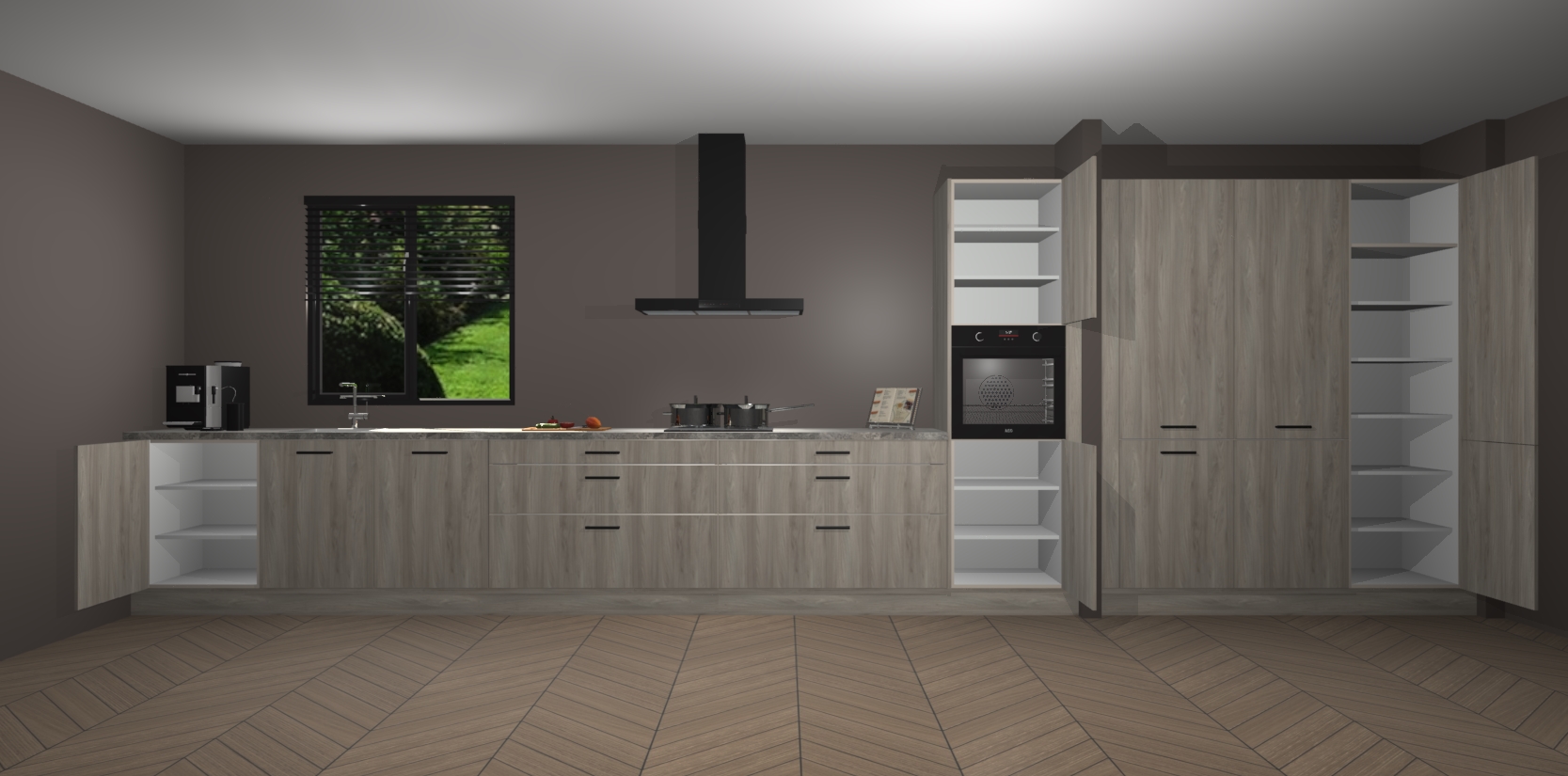 Een stijlvolle en praktische keuken als deze mag gezien worden. Dankzij de prachtige matte afwerking wordt de keuken gemakkelijk het middelpunt van uw huis - hij ziet er geweldig uit onder allerlei lichtomstandigheden, van dag tot nacht!