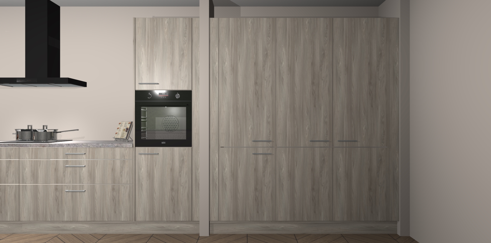 Een stijlvolle en praktische keuken als deze mag gezien worden. Dankzij de prachtige matte afwerking wordt de keuken gemakkelijk het middelpunt van uw huis - hij ziet er geweldig uit onder allerlei lichtomstandigheden, van dag tot nacht!