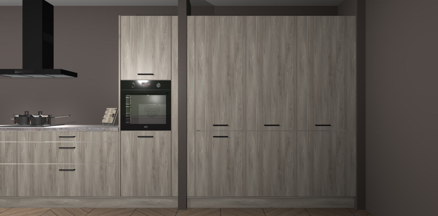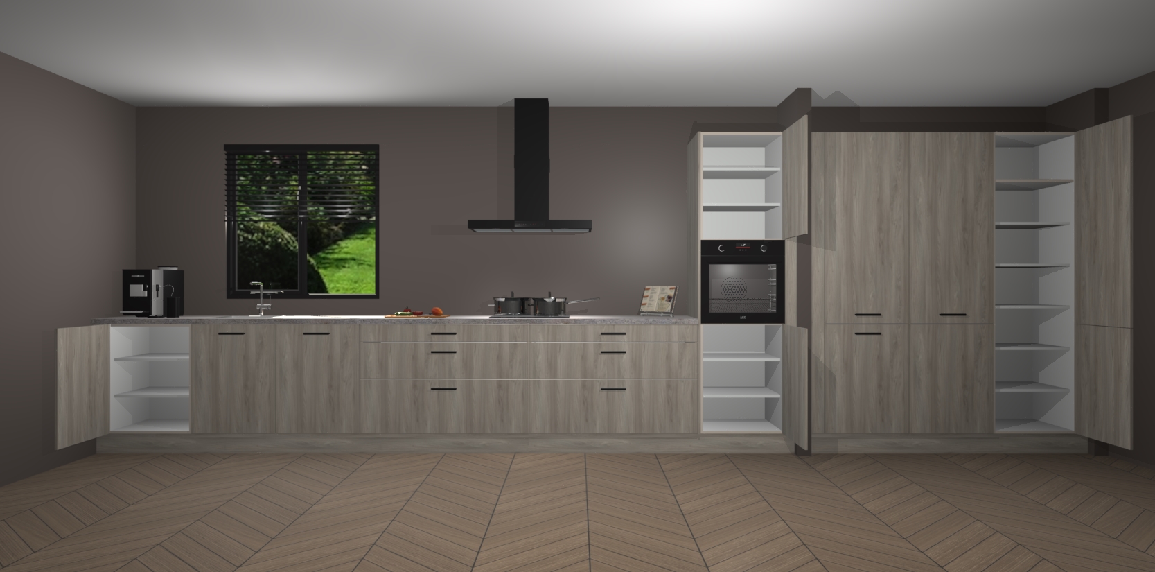 Een stijlvolle en praktische keuken als deze mag gezien worden. Dankzij de prachtige matte afwerking wordt de keuken gemakkelijk het middelpunt van uw huis - hij ziet er geweldig uit onder allerlei lichtomstandigheden, van dag tot nacht!