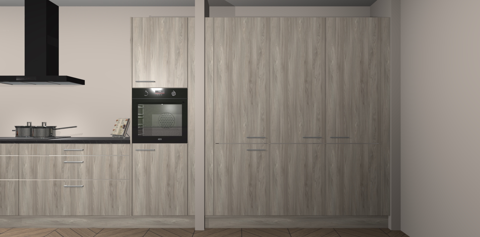 Een stijlvolle en praktische keuken als deze mag gezien worden. Dankzij de prachtige matte afwerking wordt de keuken gemakkelijk het middelpunt van uw huis - hij ziet er geweldig uit onder allerlei lichtomstandigheden, van dag tot nacht!