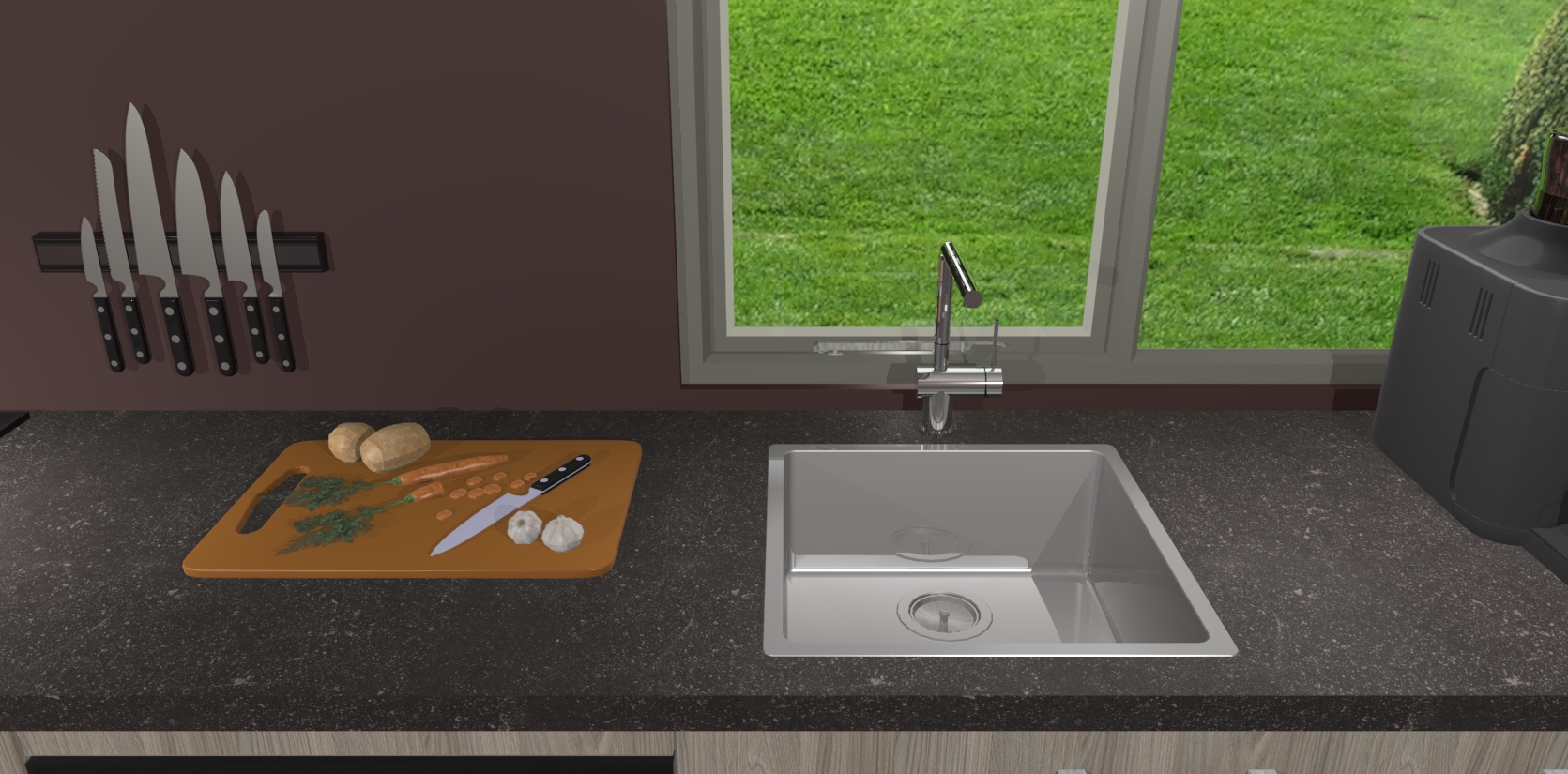 - De spoelbak is nog niet in gevreesd. Dit dient tijdens het werk gedaan te worden