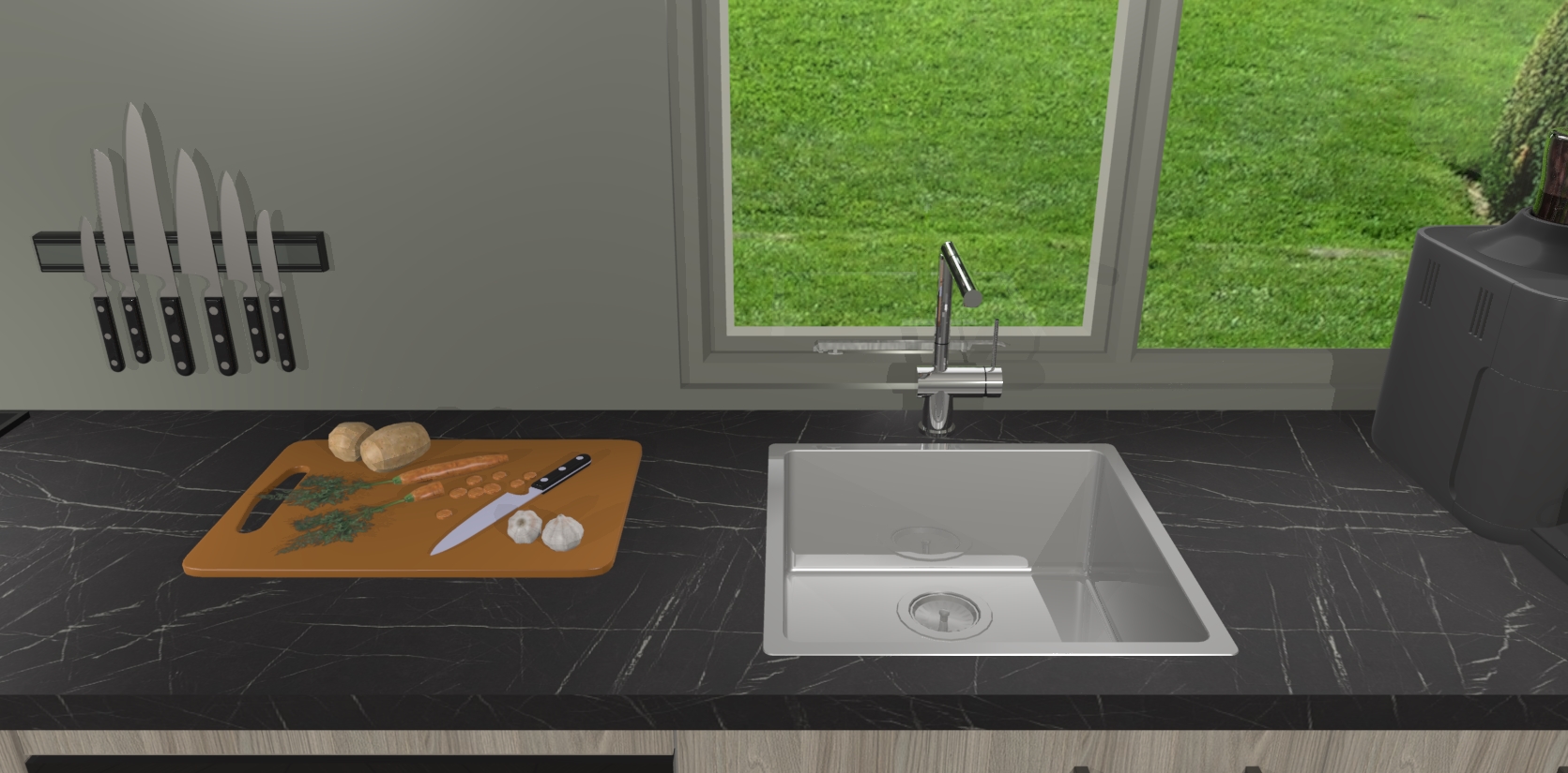 - De spoelbak is nog niet in gevreesd. Dit dient tijdens het werk gedaan te worden