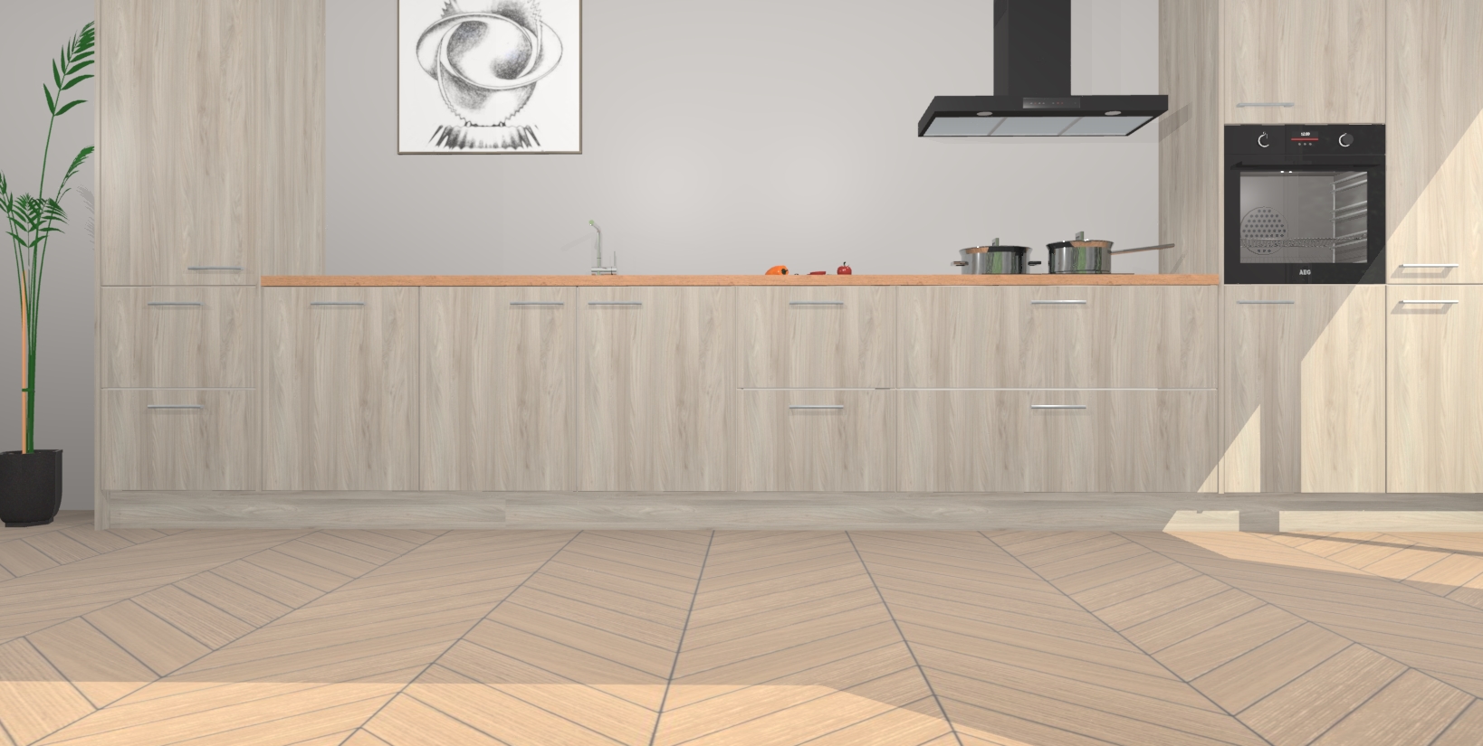 Inclusief plinten, stelpoten en werkblad
