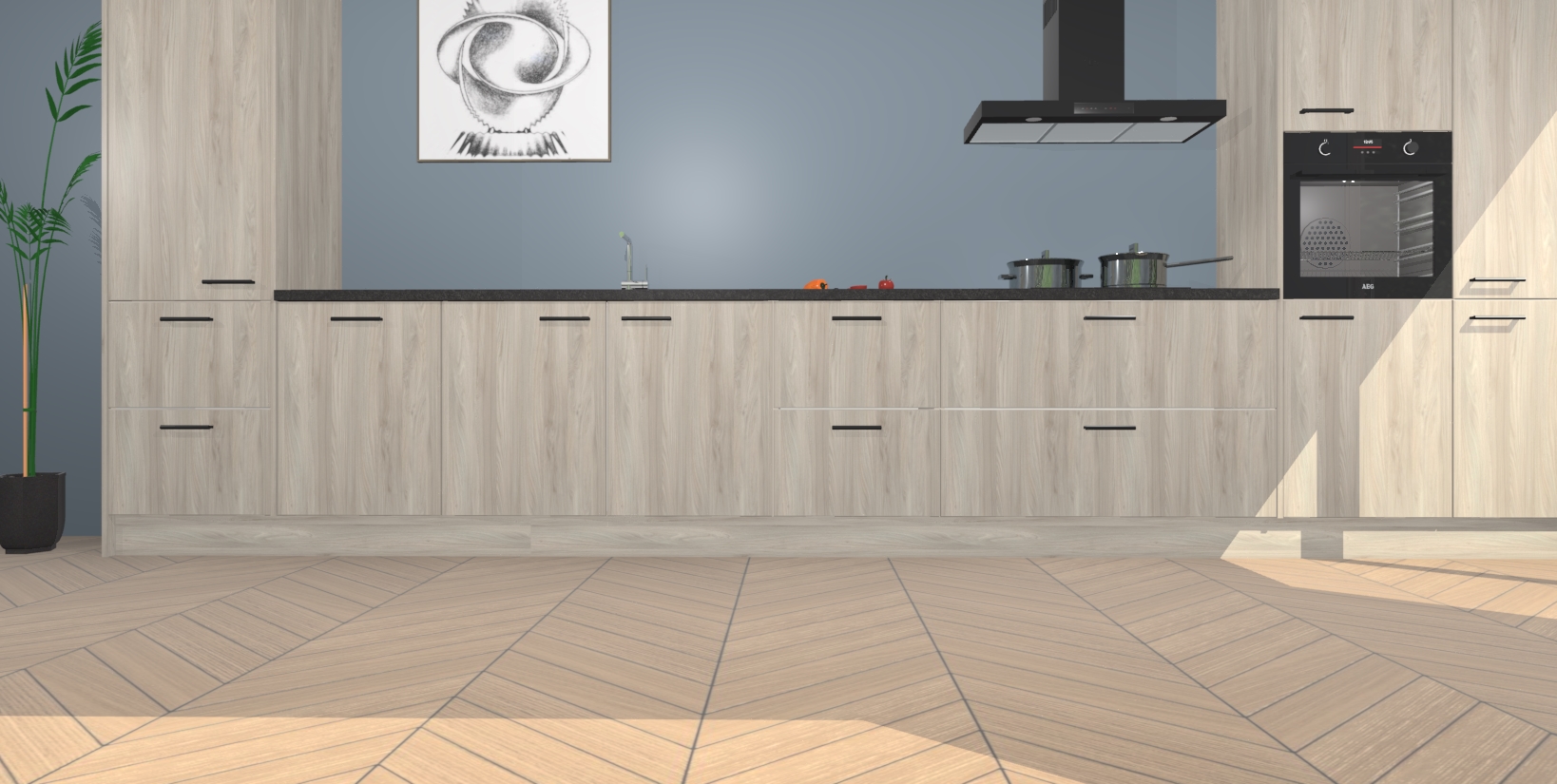 Inclusief plinten, stelpoten en werkblad