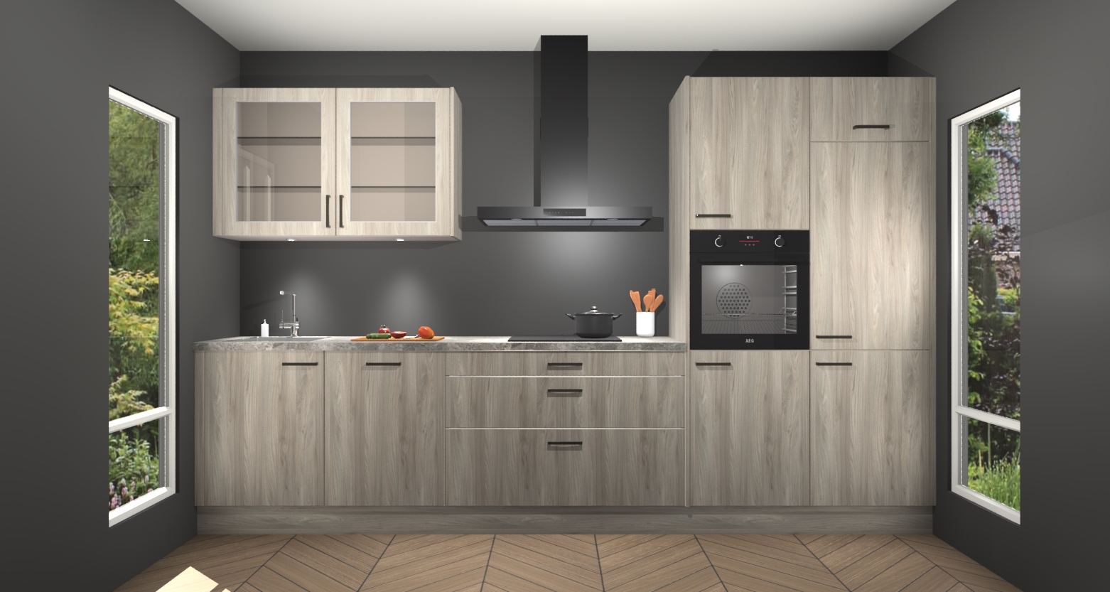 De olm keuken Cairo is de perfecte mix van modern en tijdloos design. Met zijn prachtige glazen deuren op de bovenkastjes voegt hij echt iets speciaals en unieks toe aan elke keuken. En met vijf ingebouwde apparaten inbegrepen - een oven, inductiekookplaat, afzuigkap, vaatwasser en koelkast - kunt u deze keuken echt helemaal van uzelf maken! U kunt na bestelling ook upgraden naar AEG voor een nog hogere kwaliteitservaring.