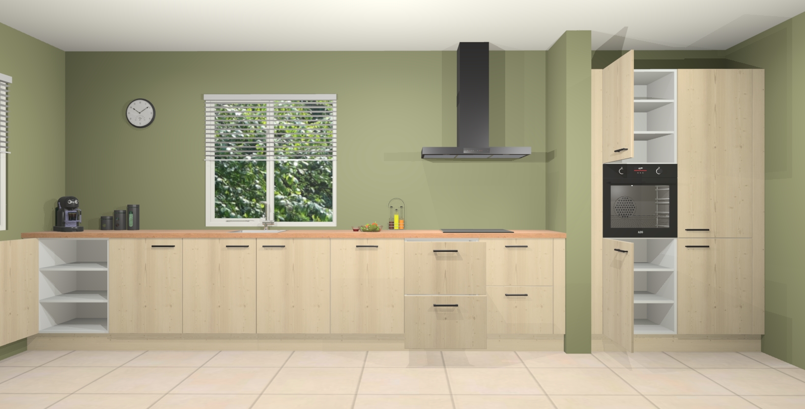 Met de Olm keuken Elzas Maakt u van uw keuken het pronkstuk van uw huis. Stijlvol en toch praktisch, de nieuwste look voor wie meer waarde en charme aan zijn huis wil toevoegen. Met prachtige handgrepen die zich lenen voor een klassieke stijlbron, zal u niet teleurgesteld zijn in het resultaat. De soft-close deurscharnieren geven een gevoel van luxe omdat ze zachtjes bewegen zonder storende of krakende geluiden te veroorzaken.