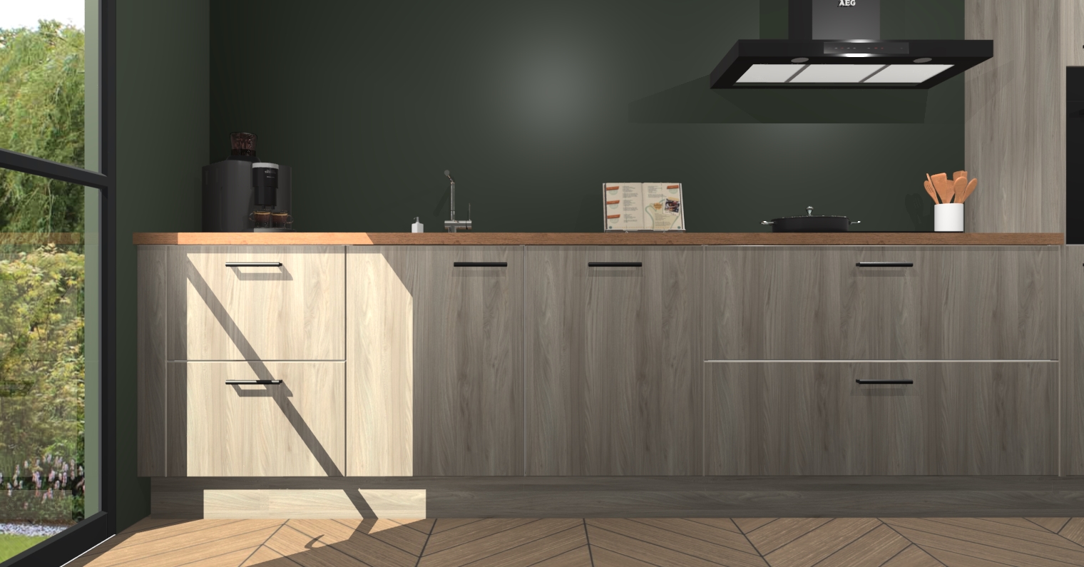 In deze box zijn alle kleuren verzameld van de deuren en werkbladen. Vraag de gratis kleurenbox aan en kijk thuis rustig verder!