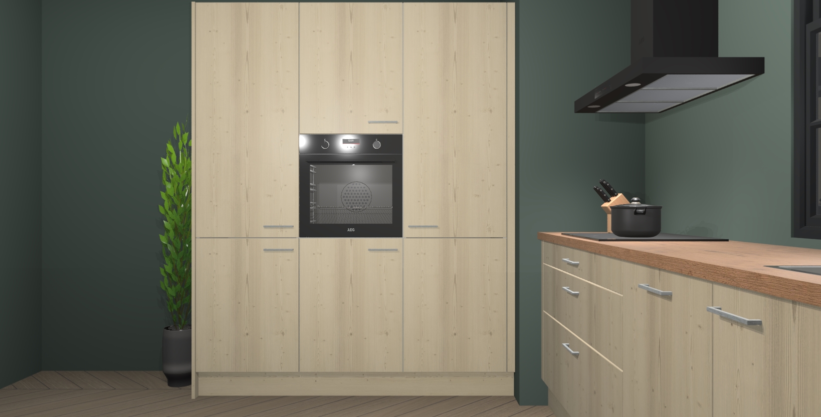 De softclose deuren openen en sluiten is ook heel eenvoudig - geniet van een moeiteloze keukenervaring, zelfs als er kinderen rondlopen. Voor extra gemak bij het plaatsen van uw bestelling bieden we ook een upgrade naar een kookplaat met geïntegreerde afzuiging.
