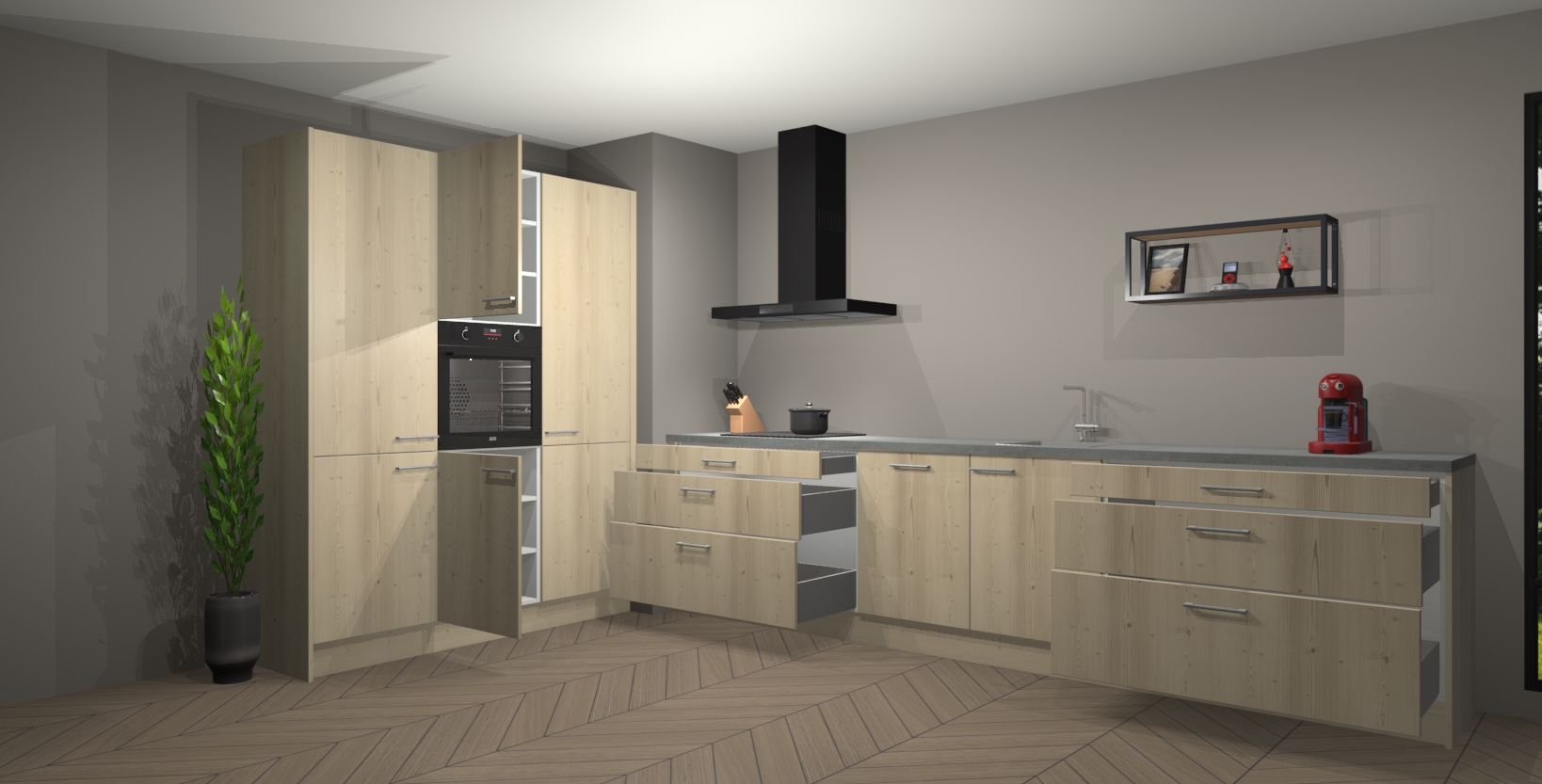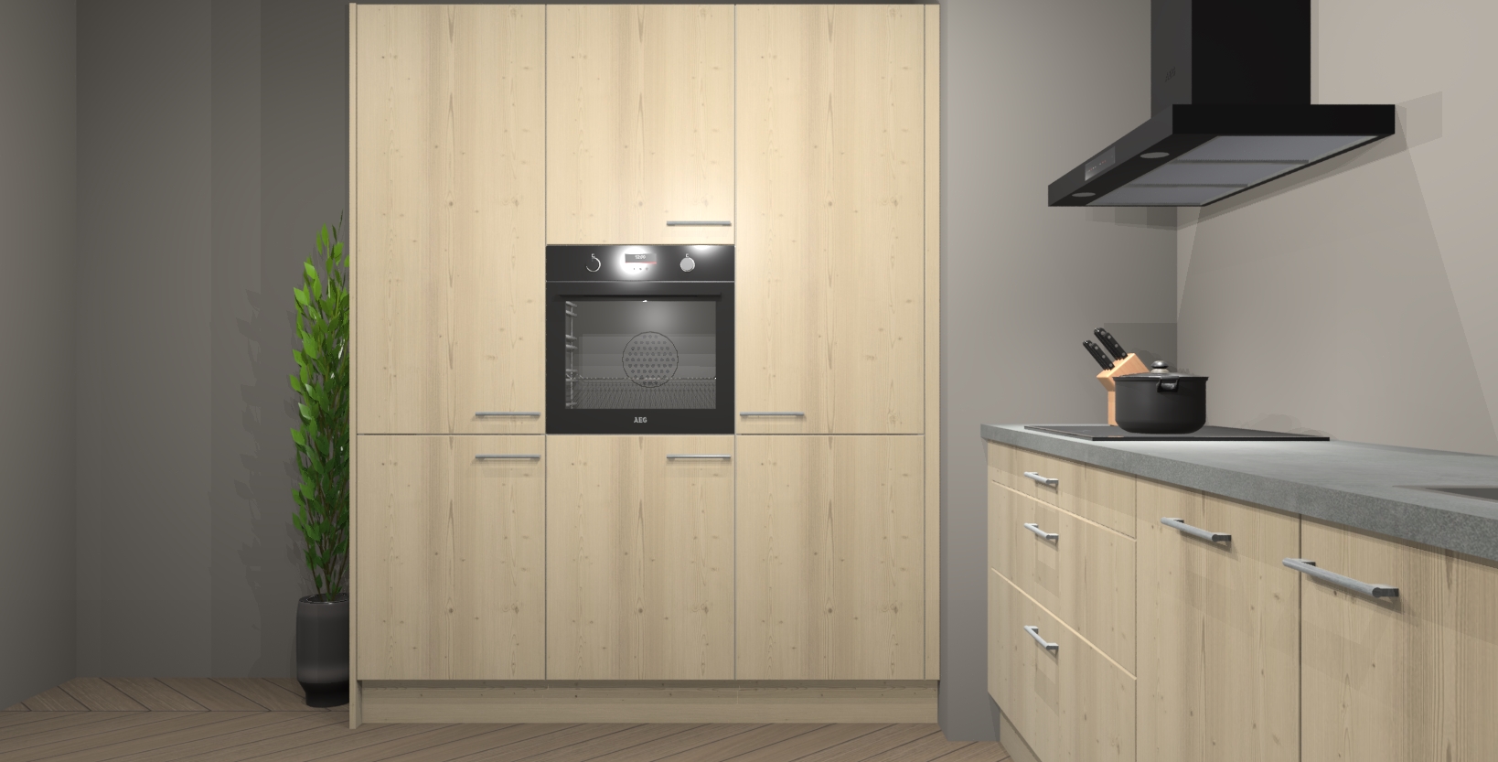 De softclose deuren openen en sluiten is ook heel eenvoudig - geniet van een moeiteloze keukenervaring, zelfs als er kinderen rondlopen. Voor extra gemak bij het plaatsen van uw bestelling bieden we ook een upgrade naar een kookplaat met geïntegreerde afzuiging.
