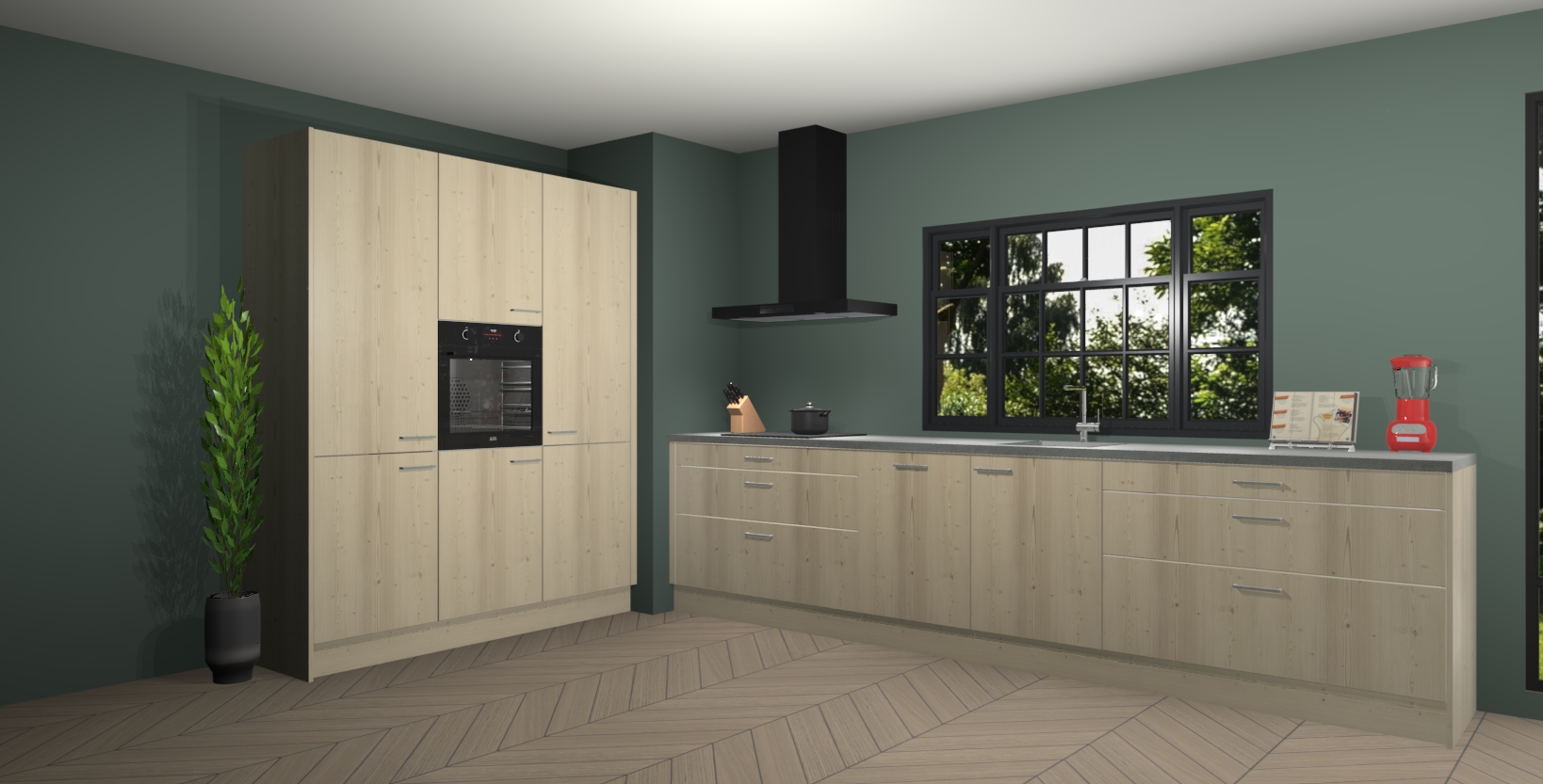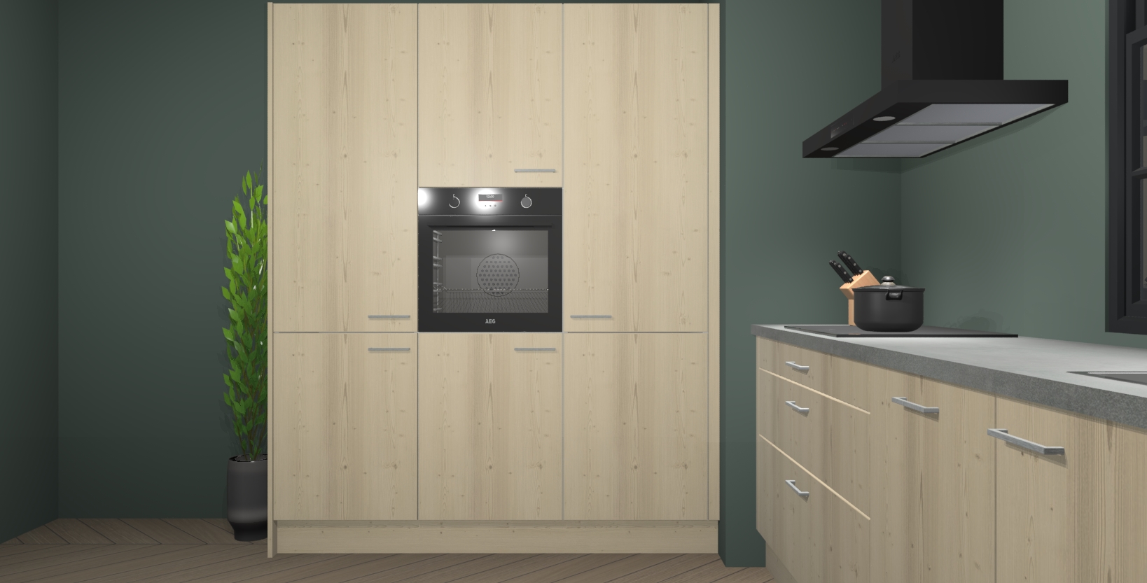 De softclose deuren openen en sluiten is ook heel eenvoudig - geniet van een moeiteloze keukenervaring, zelfs als er kinderen rondlopen. Voor extra gemak bij het plaatsen van uw bestelling bieden we ook een upgrade naar een kookplaat met geïntegreerde afzuiging.