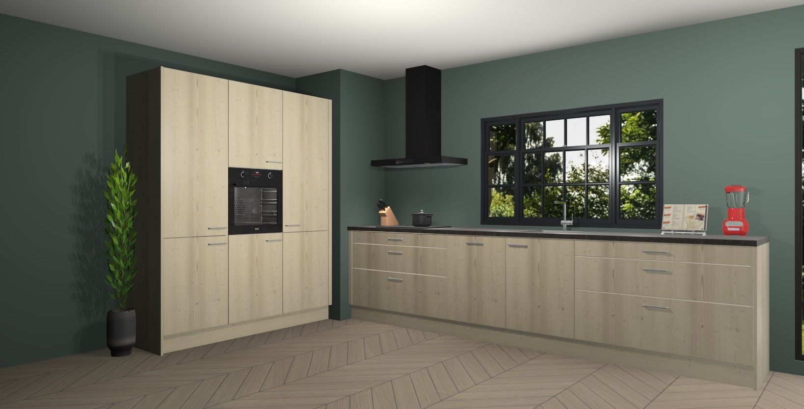 De softclose deuren openen en sluiten is ook heel eenvoudig - geniet van een moeiteloze keukenervaring, zelfs als er kinderen rondlopen. Voor extra gemak bij het plaatsen van uw bestelling bieden we ook een upgrade naar een kookplaat met geïntegreerde afzuiging.