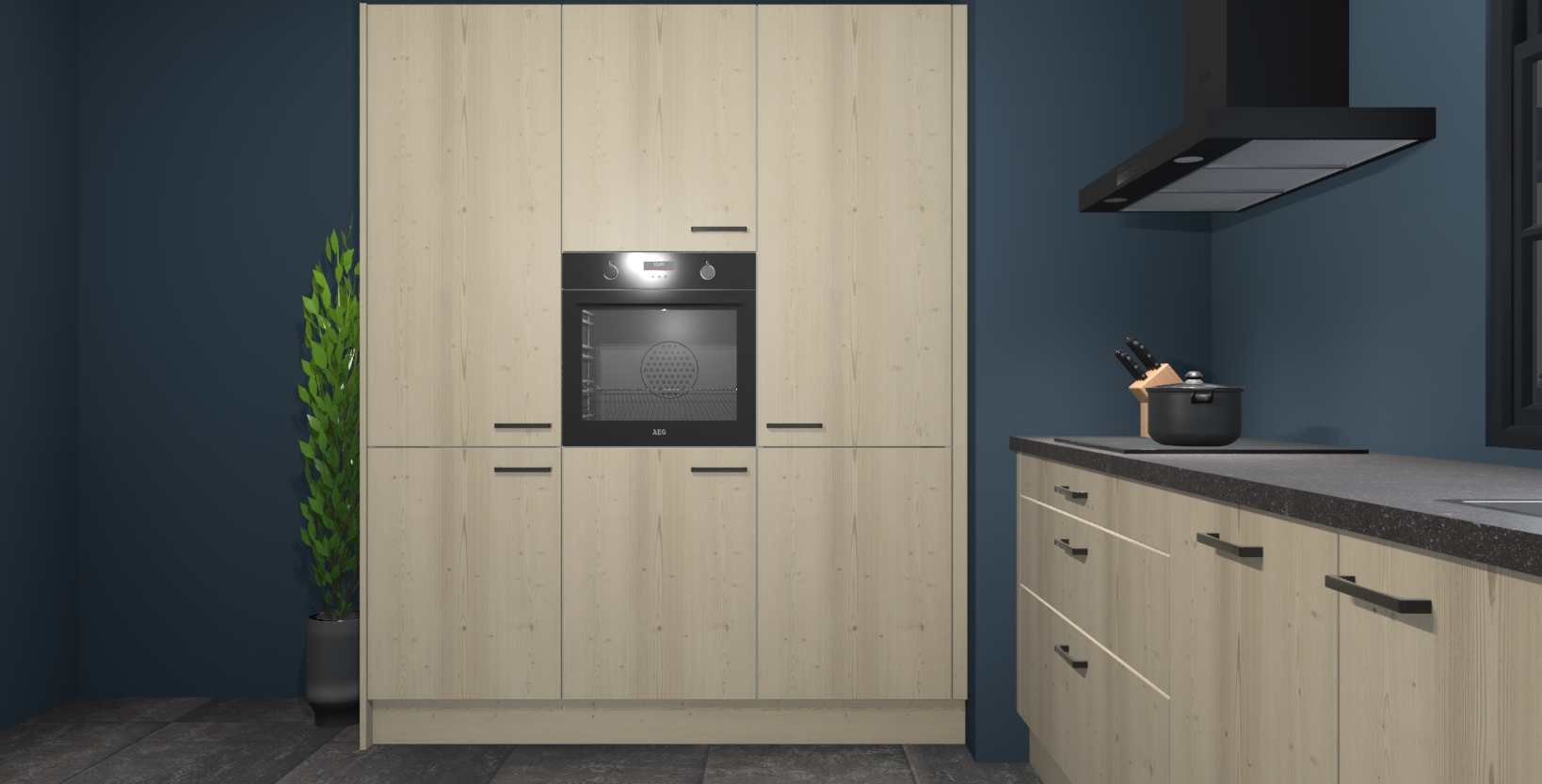 De softclose deuren openen en sluiten is ook heel eenvoudig - geniet van een moeiteloze keukenervaring, zelfs als er kinderen rondlopen. Voor extra gemak bij het plaatsen van uw bestelling bieden we ook een upgrade naar een kookplaat met geïntegreerde afzuiging.