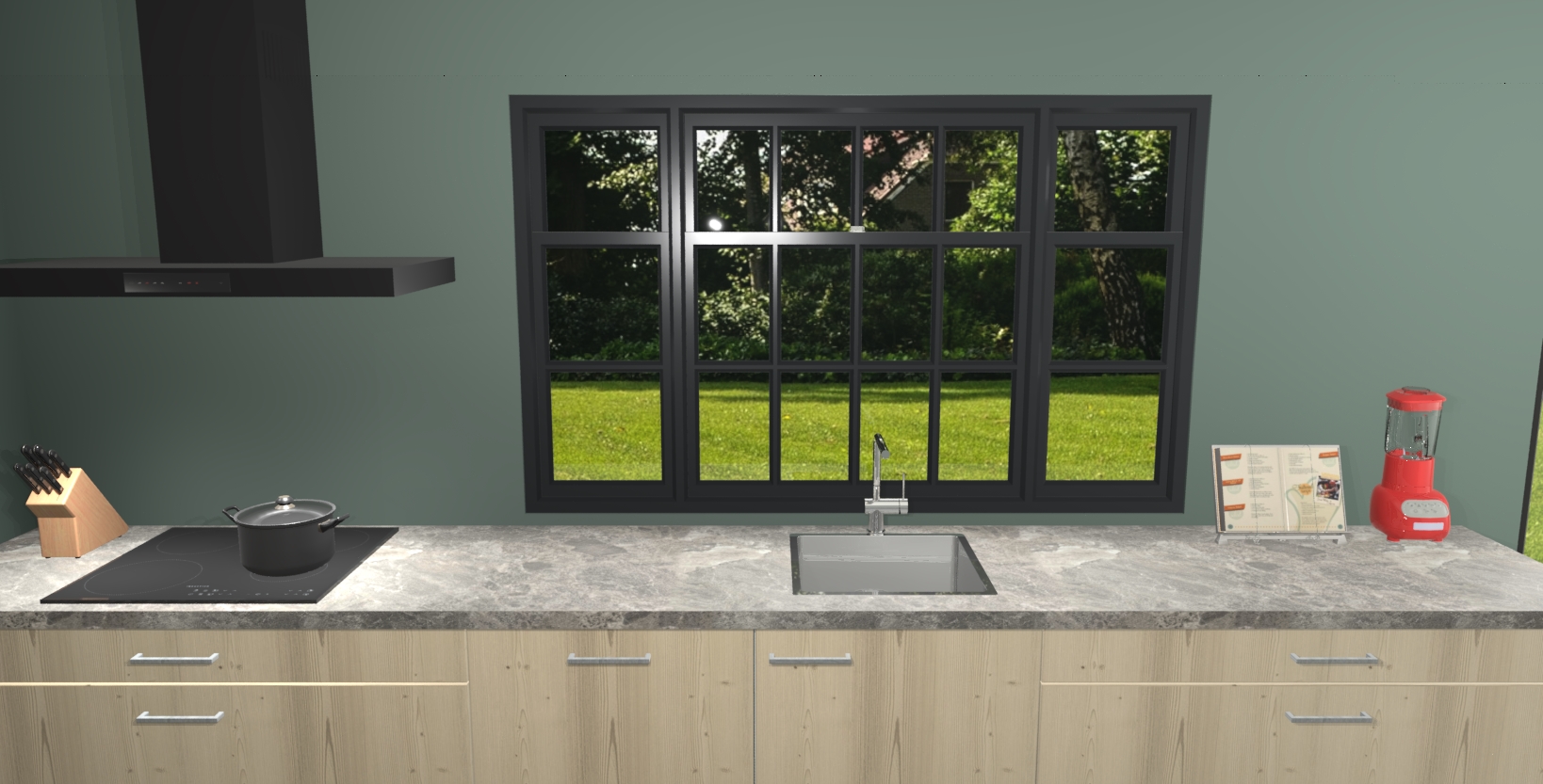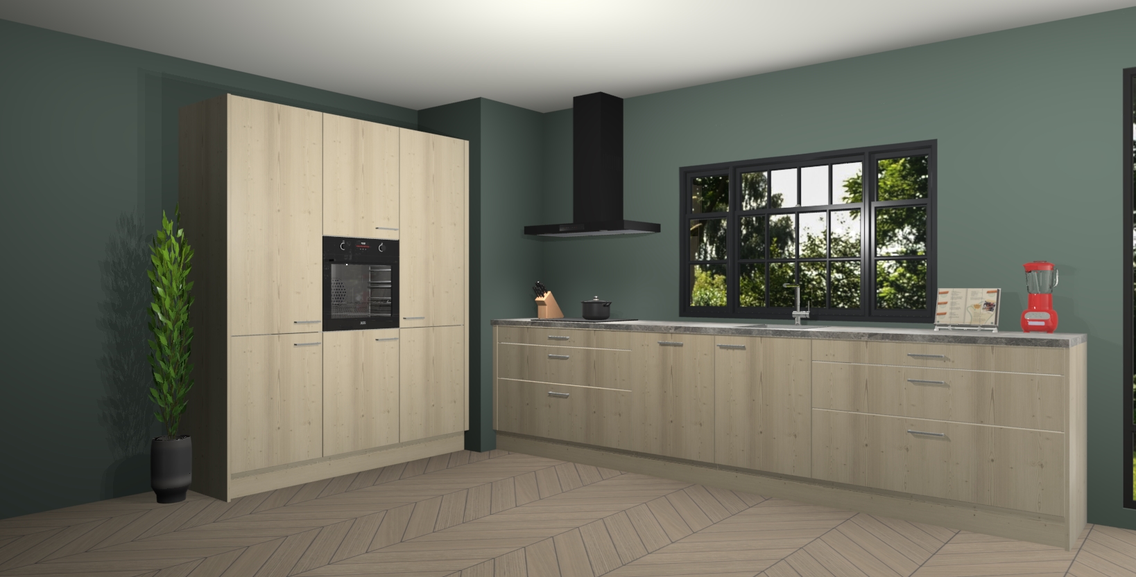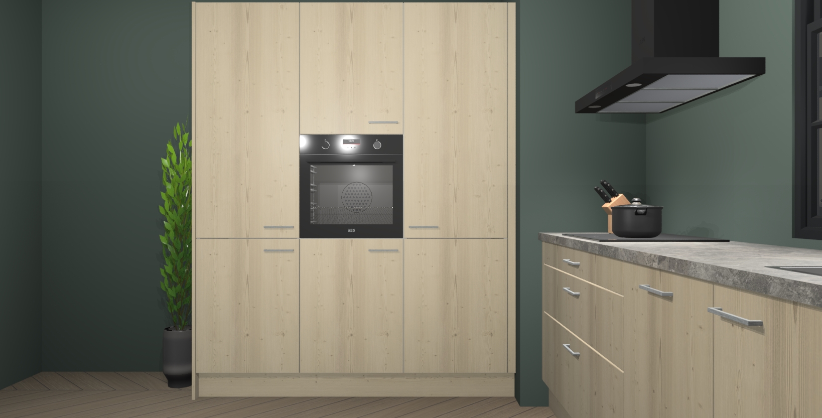 De softclose deuren openen en sluiten is ook heel eenvoudig - geniet van een moeiteloze keukenervaring, zelfs als er kinderen rondlopen. Voor extra gemak bij het plaatsen van uw bestelling bieden we ook een upgrade naar een kookplaat met geïntegreerde afzuiging.