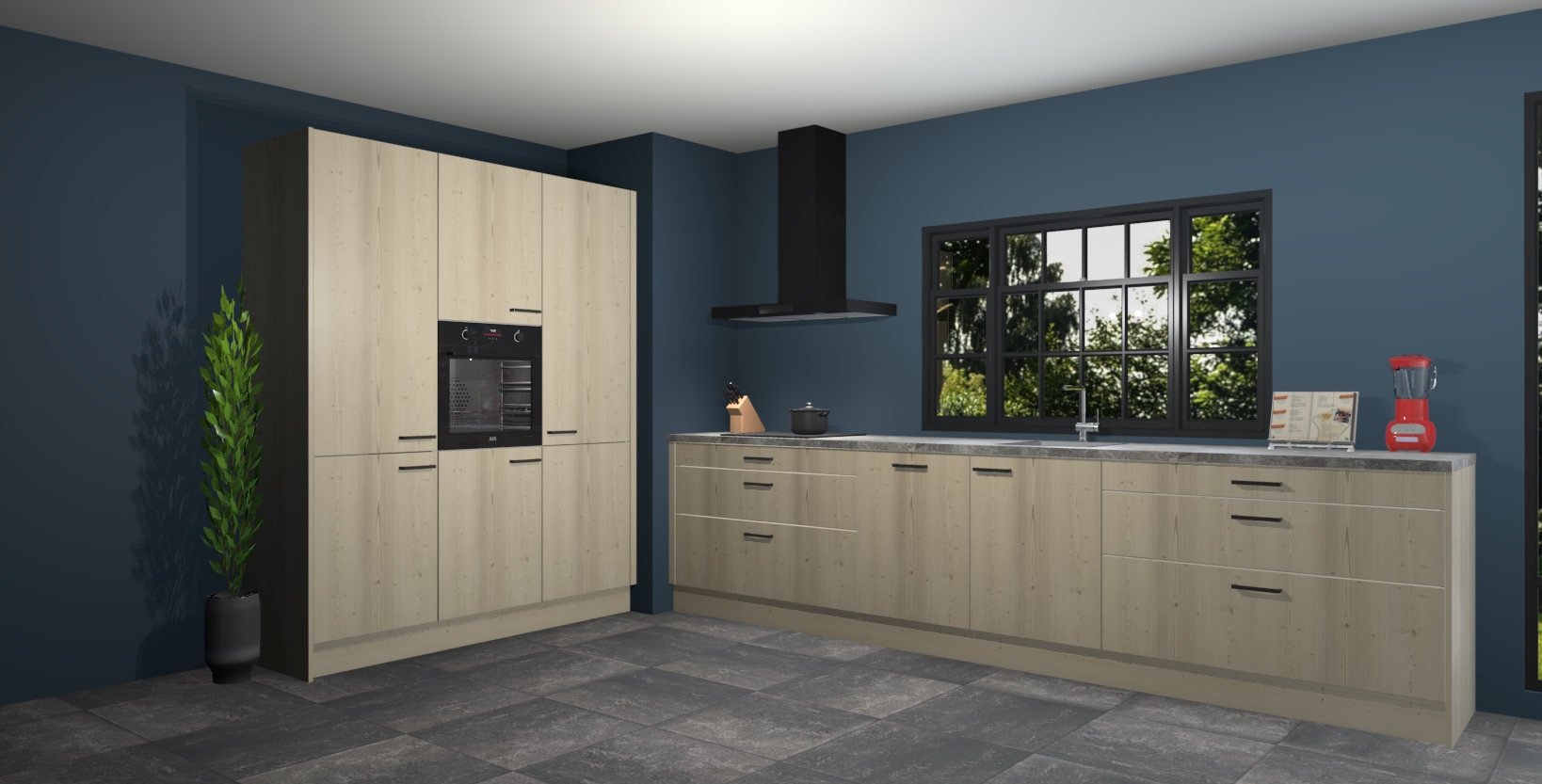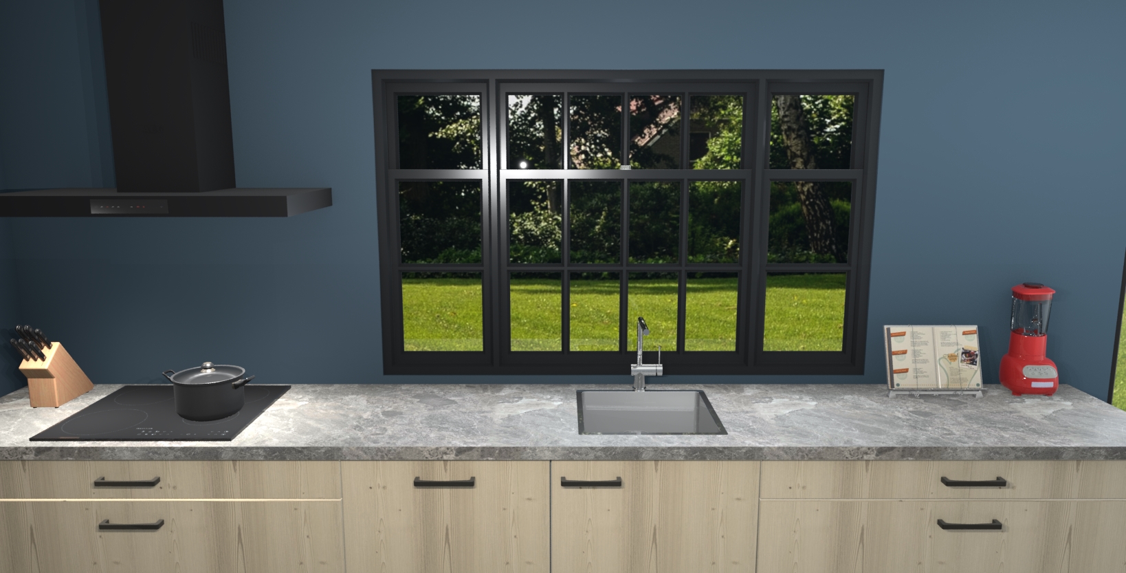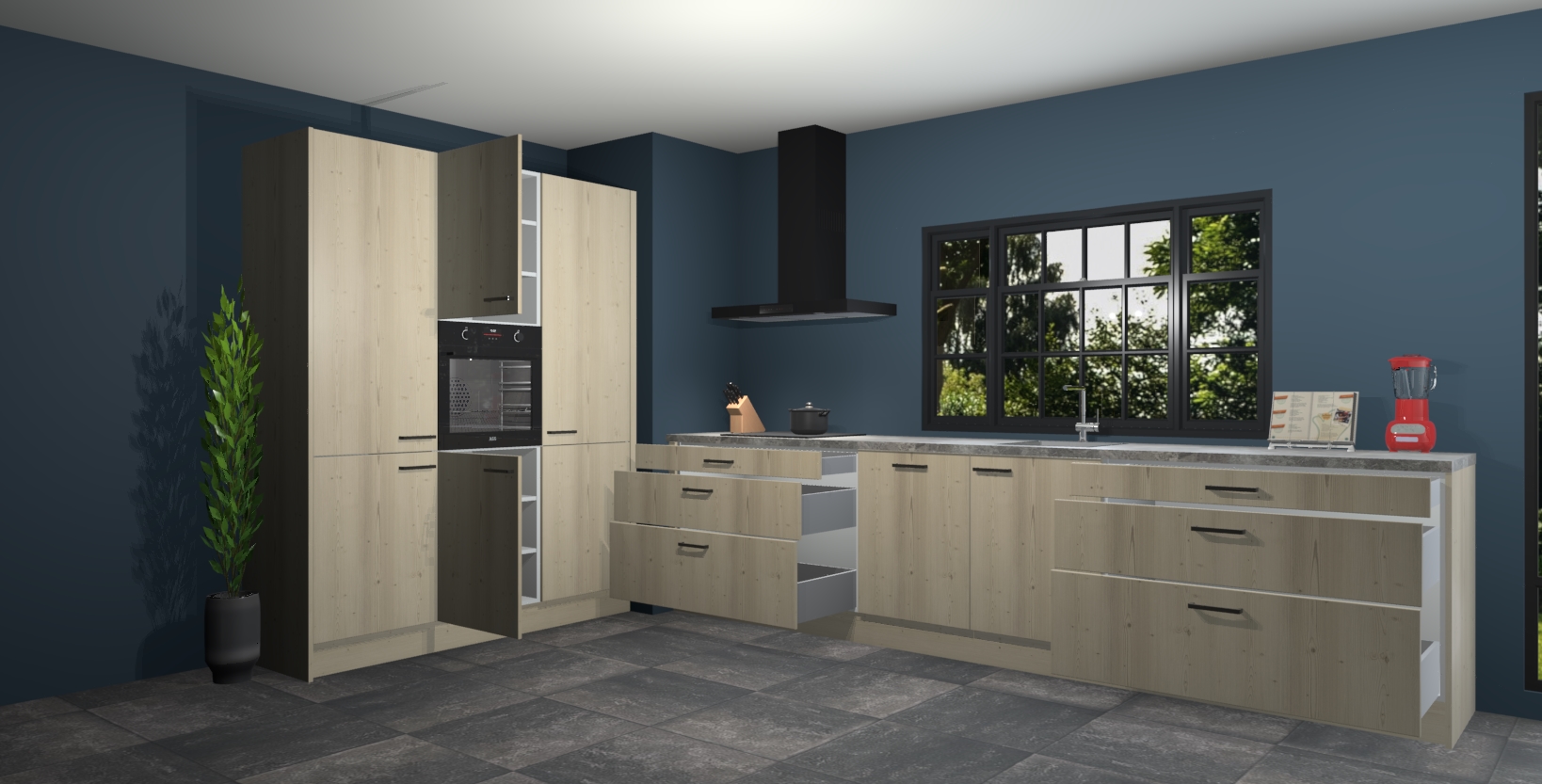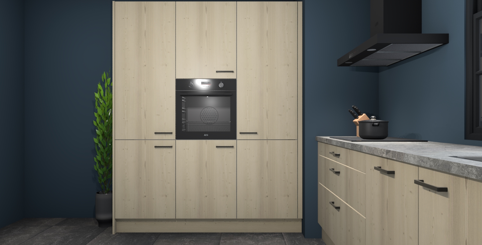 De softclose deuren openen en sluiten is ook heel eenvoudig - geniet van een moeiteloze keukenervaring, zelfs als er kinderen rondlopen. Voor extra gemak bij het plaatsen van uw bestelling bieden we ook een upgrade naar een kookplaat met geïntegreerde afzuiging.