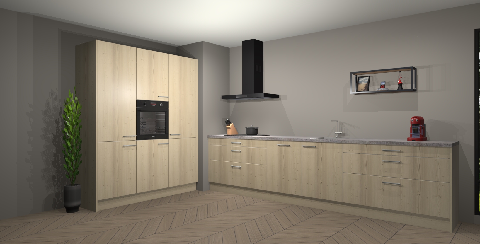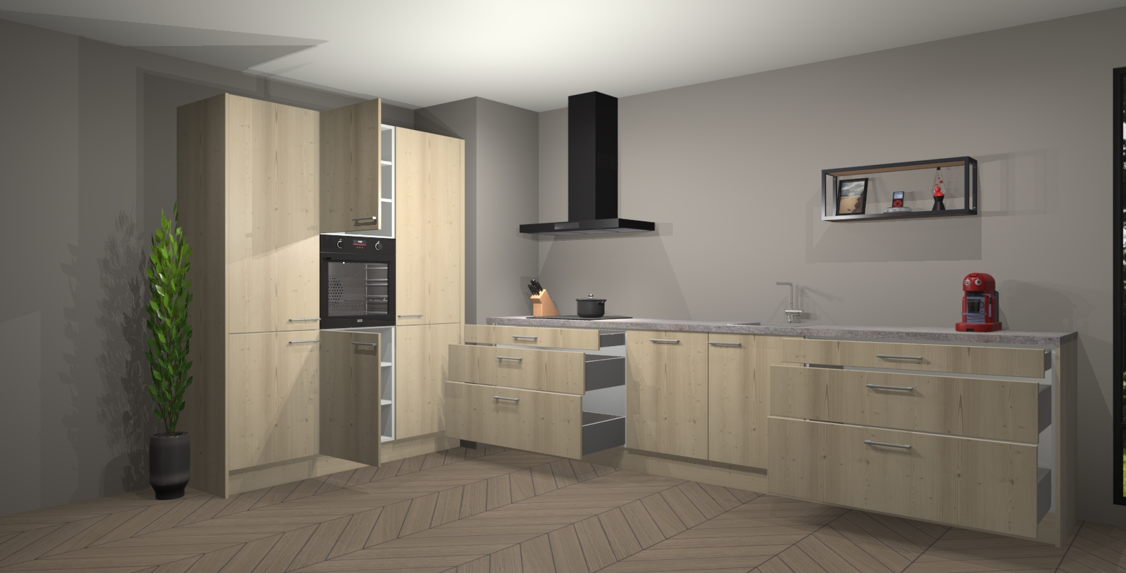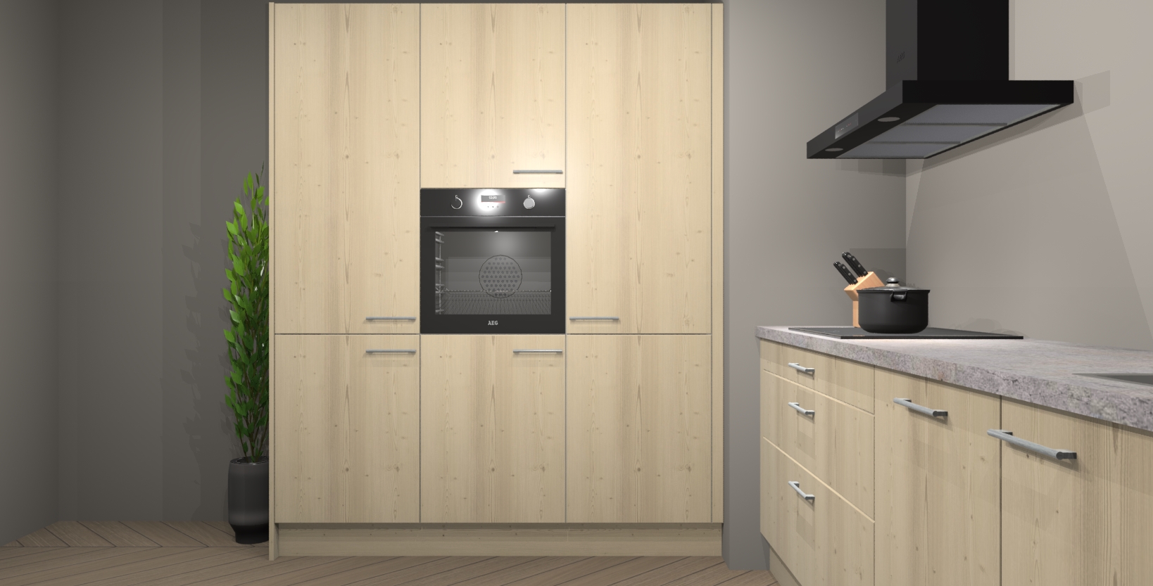 De softclose deuren openen en sluiten is ook heel eenvoudig - geniet van een moeiteloze keukenervaring, zelfs als er kinderen rondlopen. Voor extra gemak bij het plaatsen van uw bestelling bieden we ook een upgrade naar een kookplaat met geïntegreerde afzuiging.
