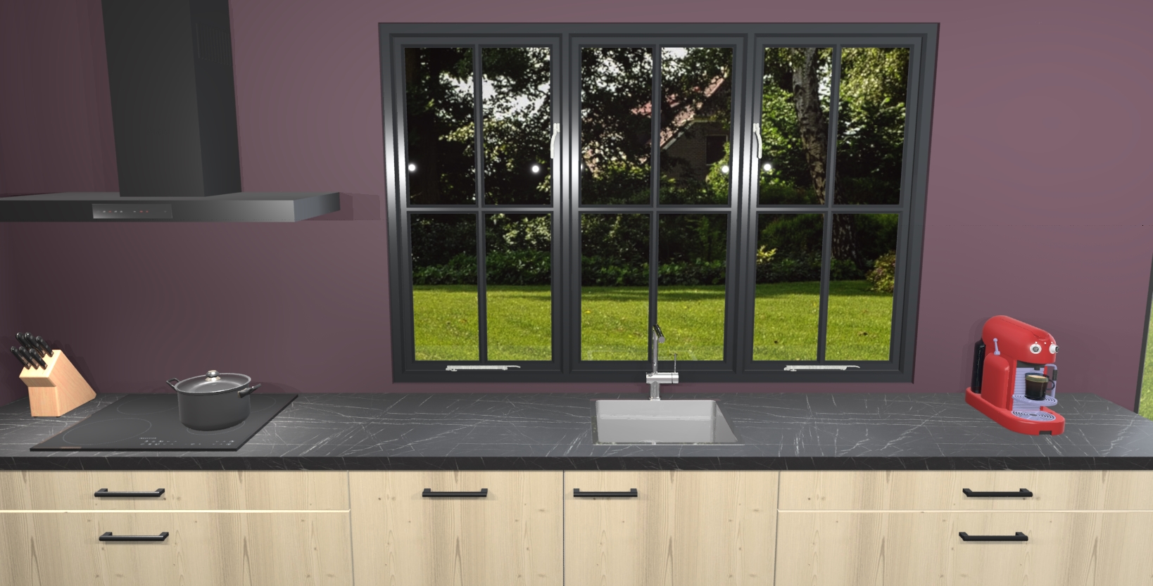 De softclose deuren openen en sluiten is ook heel eenvoudig - geniet van een moeiteloze keukenervaring, zelfs als er kinderen rondlopen. Voor extra gemak bij het plaatsen van uw bestelling bieden we ook een upgrade naar een kookplaat met geïntegreerde afzuiging.