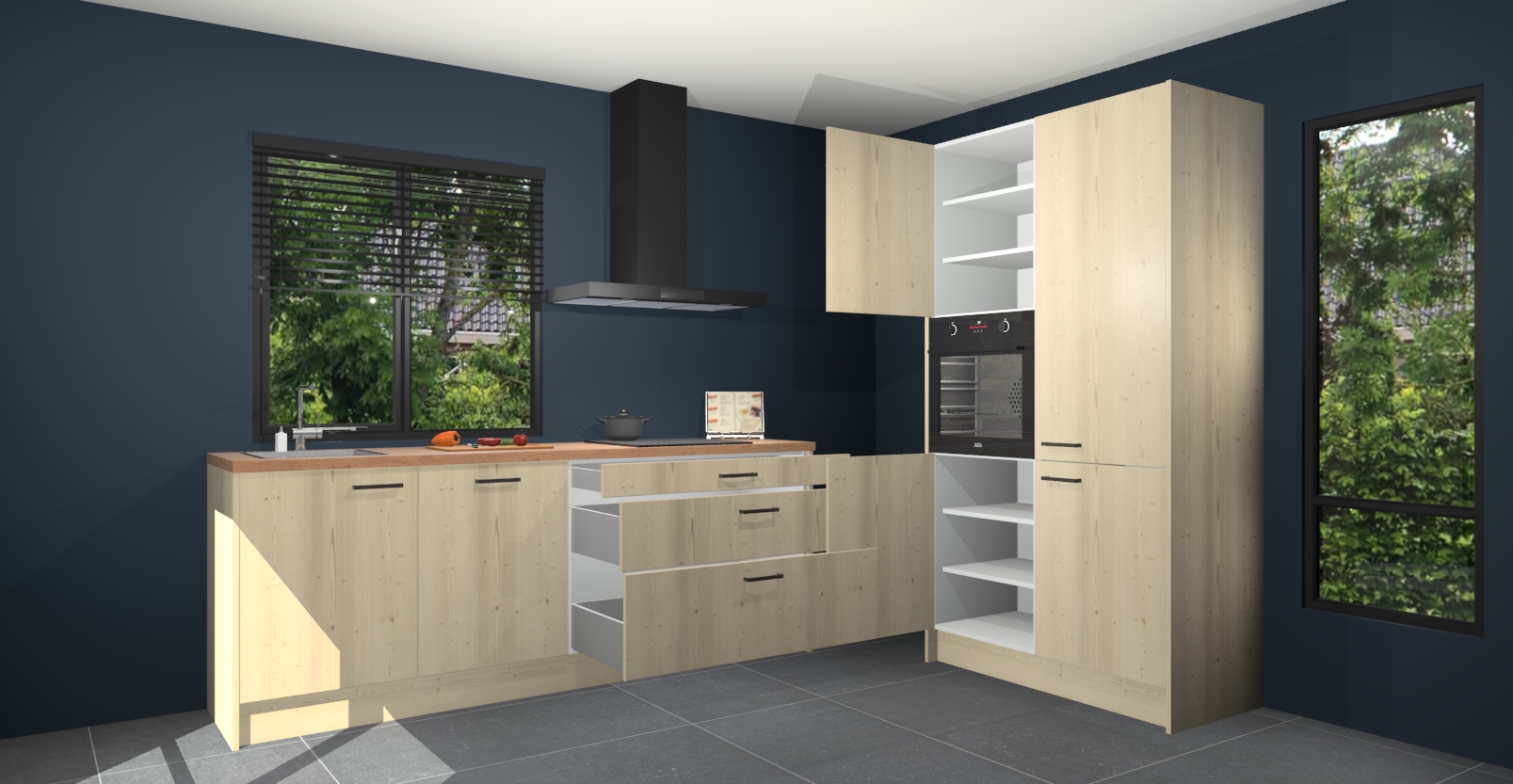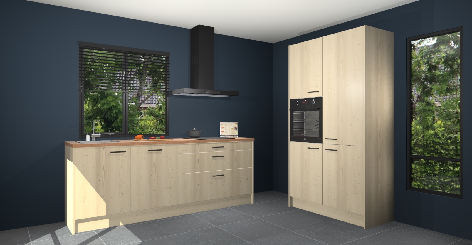 De setting is compleet gemaakt door de vijf inbouwapparaten: wanneer u gaat bestellen kunt u upgraden naar AEG-apparaten als oven, inductieplaat, afzuigkap, vaatwasser en koelkast. Kiest u voor onze Olm keuken Monaco, dan weet u zeker dat u te maken heeft met Duitse kwaliteit. Bovendien is er altijd sprake van een lage prijs en profiteren we aantrekkelijk leveringstermijn: die bedraagt slechts 7 weken ! Om het extra makkelijk te maken worden de keukenkasten reeds voorgemonteerd geleverd.
