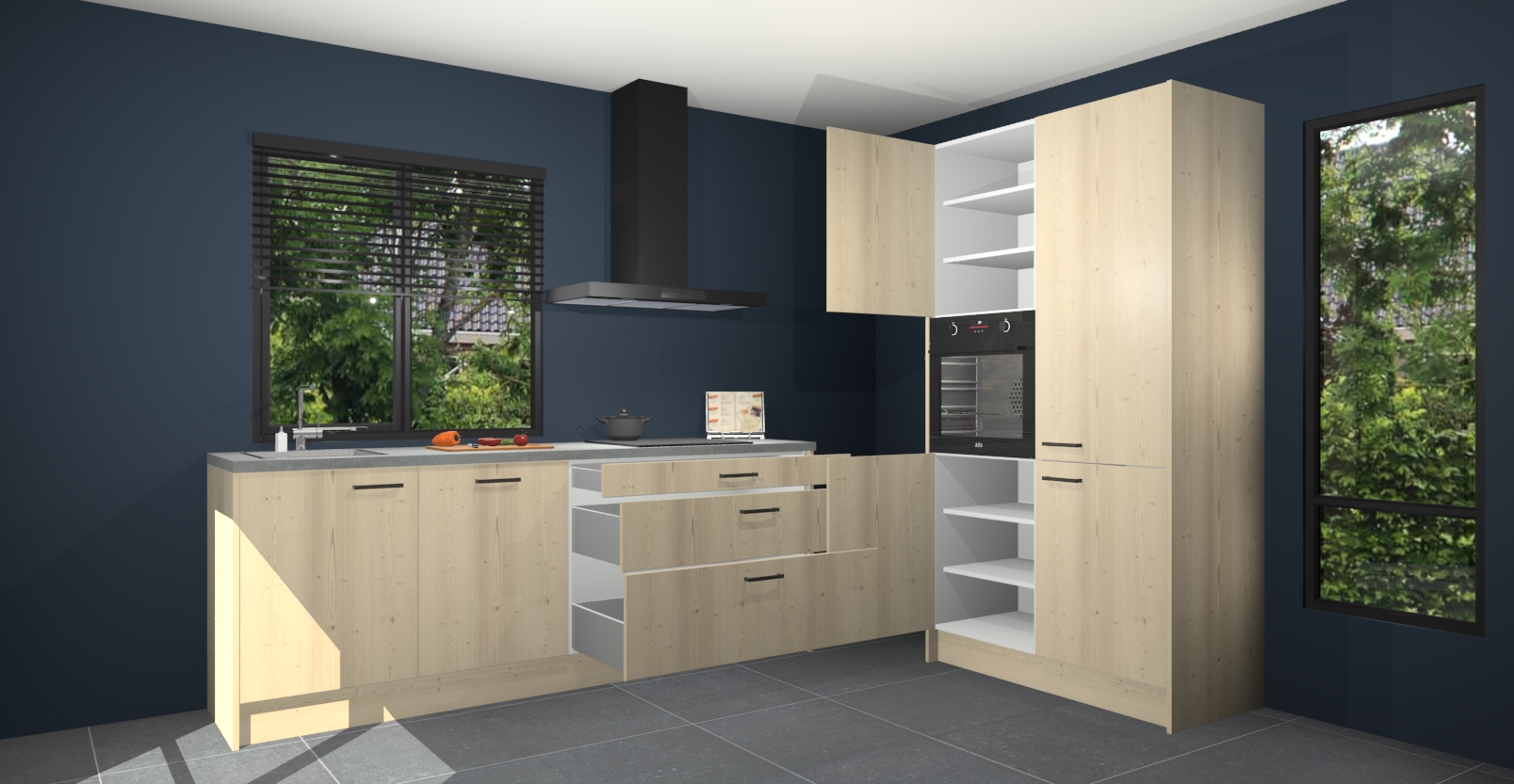 De setting is compleet gemaakt door de vijf inbouwapparaten: wanneer u gaat bestellen kunt u upgraden naar AEG-apparaten als oven, inductieplaat, afzuigkap, vaatwasser en koelkast. Kiest u voor onze Olm keuken Monaco, dan weet u zeker dat u te maken heeft met Duitse kwaliteit. Bovendien is er altijd sprake van een lage prijs en profiteren we aantrekkelijk leveringstermijn: die bedraagt slechts 7 weken ! Om het extra makkelijk te maken worden de keukenkasten reeds voorgemonteerd geleverd.