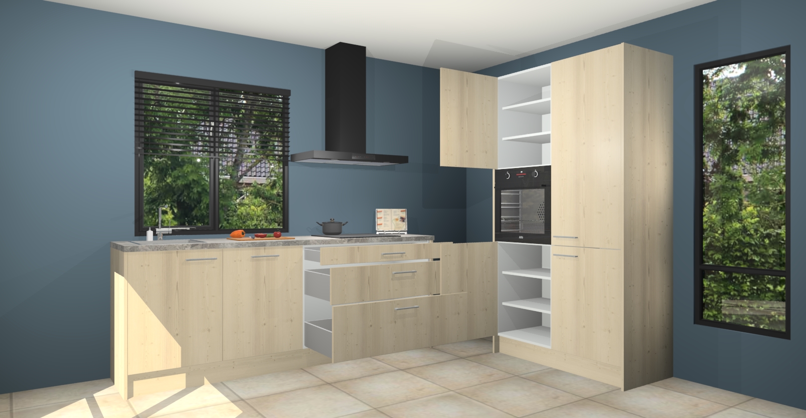 De setting is compleet gemaakt door de vijf inbouwapparaten: wanneer u gaat bestellen kunt u upgraden naar AEG-apparaten als oven, inductieplaat, afzuigkap, vaatwasser en koelkast. Kiest u voor onze Olm keuken Monaco, dan weet u zeker dat u te maken heeft met Duitse kwaliteit. Bovendien is er altijd sprake van een lage prijs en profiteren we aantrekkelijk leveringstermijn: die bedraagt slechts 7 weken ! Om het extra makkelijk te maken worden de keukenkasten reeds voorgemonteerd geleverd.