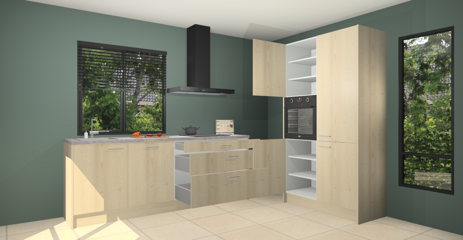 De setting is compleet gemaakt door de vijf inbouwapparaten: wanneer u gaat bestellen kunt u upgraden naar AEG-apparaten als oven, inductieplaat, afzuigkap, vaatwasser en koelkast. Kiest u voor onze Olm keuken Monaco, dan weet u zeker dat u te maken heeft met Duitse kwaliteit. Bovendien is er altijd sprake van een lage prijs en profiteren we aantrekkelijk leveringstermijn: die bedraagt slechts 7 weken ! Om het extra makkelijk te maken worden de keukenkasten reeds voorgemonteerd geleverd.