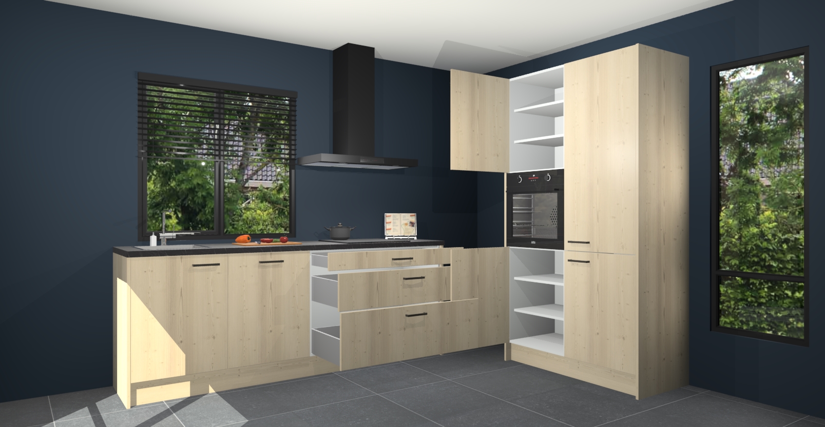 De setting is compleet gemaakt door de vijf inbouwapparaten: wanneer u gaat bestellen kunt u upgraden naar AEG-apparaten als oven, inductieplaat, afzuigkap, vaatwasser en koelkast. Kiest u voor onze Olm keuken Monaco, dan weet u zeker dat u te maken heeft met Duitse kwaliteit. Bovendien is er altijd sprake van een lage prijs en profiteren we aantrekkelijk leveringstermijn: die bedraagt slechts 7 weken ! Om het extra makkelijk te maken worden de keukenkasten reeds voorgemonteerd geleverd.