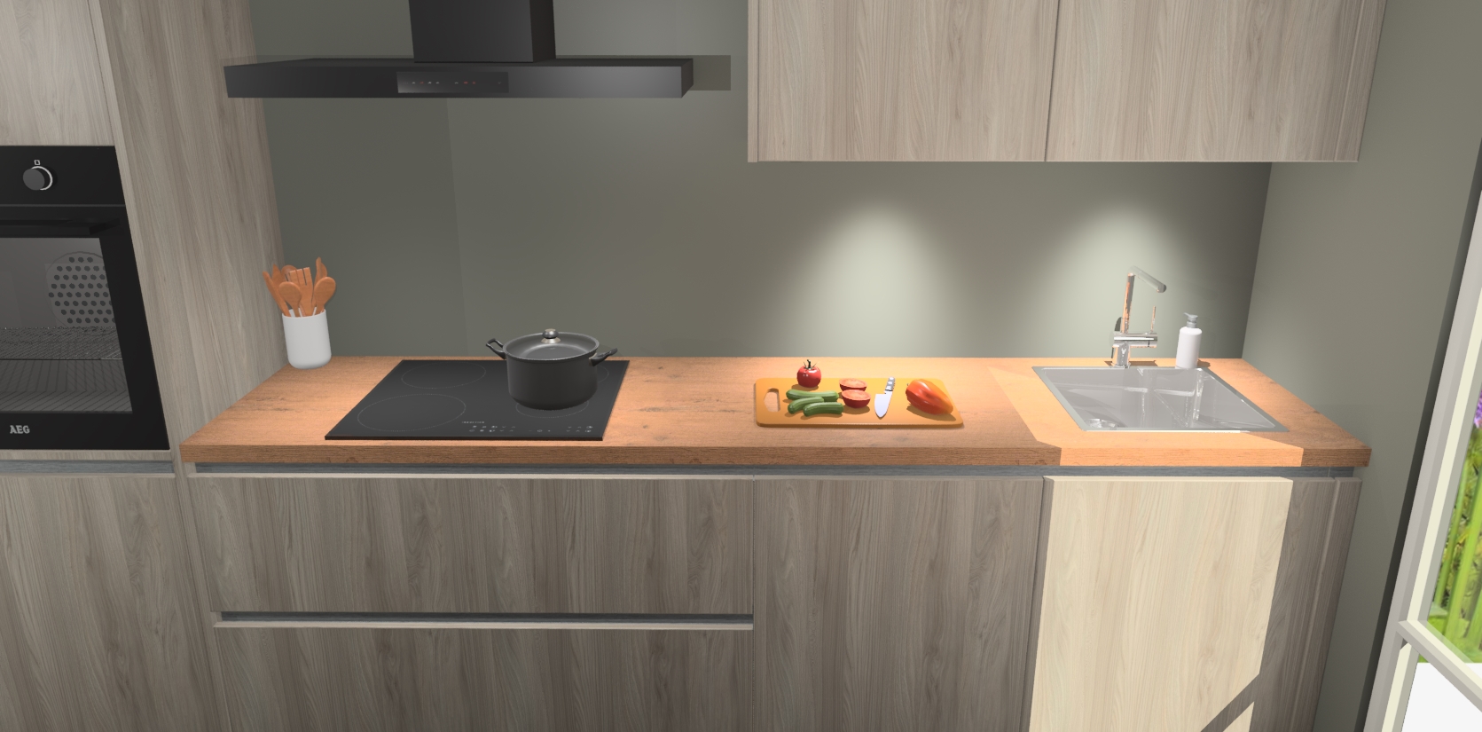 - Uitsparing van kookplaat, spoelbak en kraan dient u zelf te verzorgen.