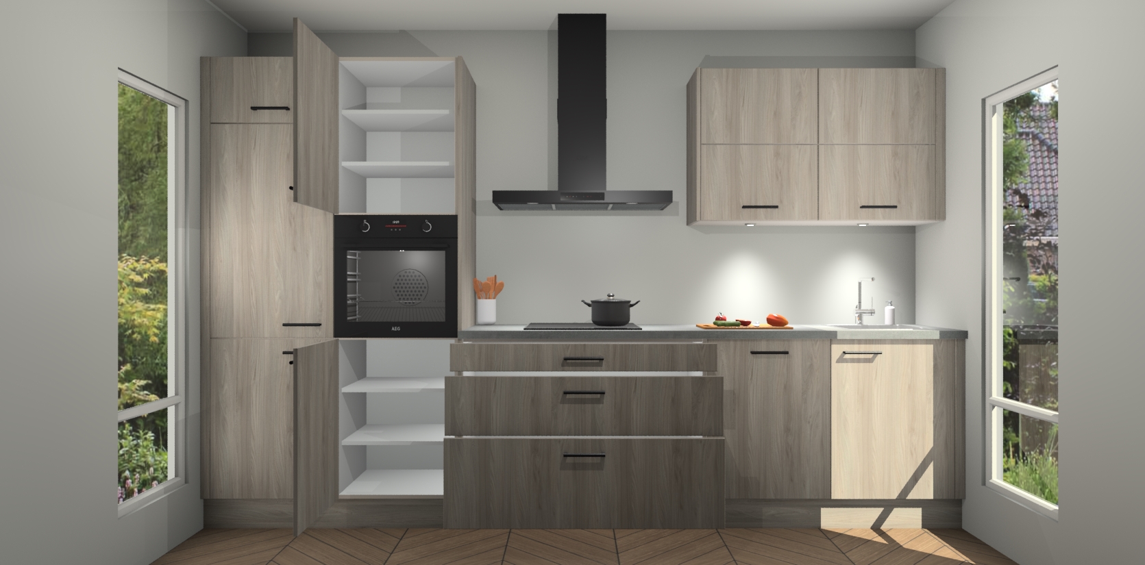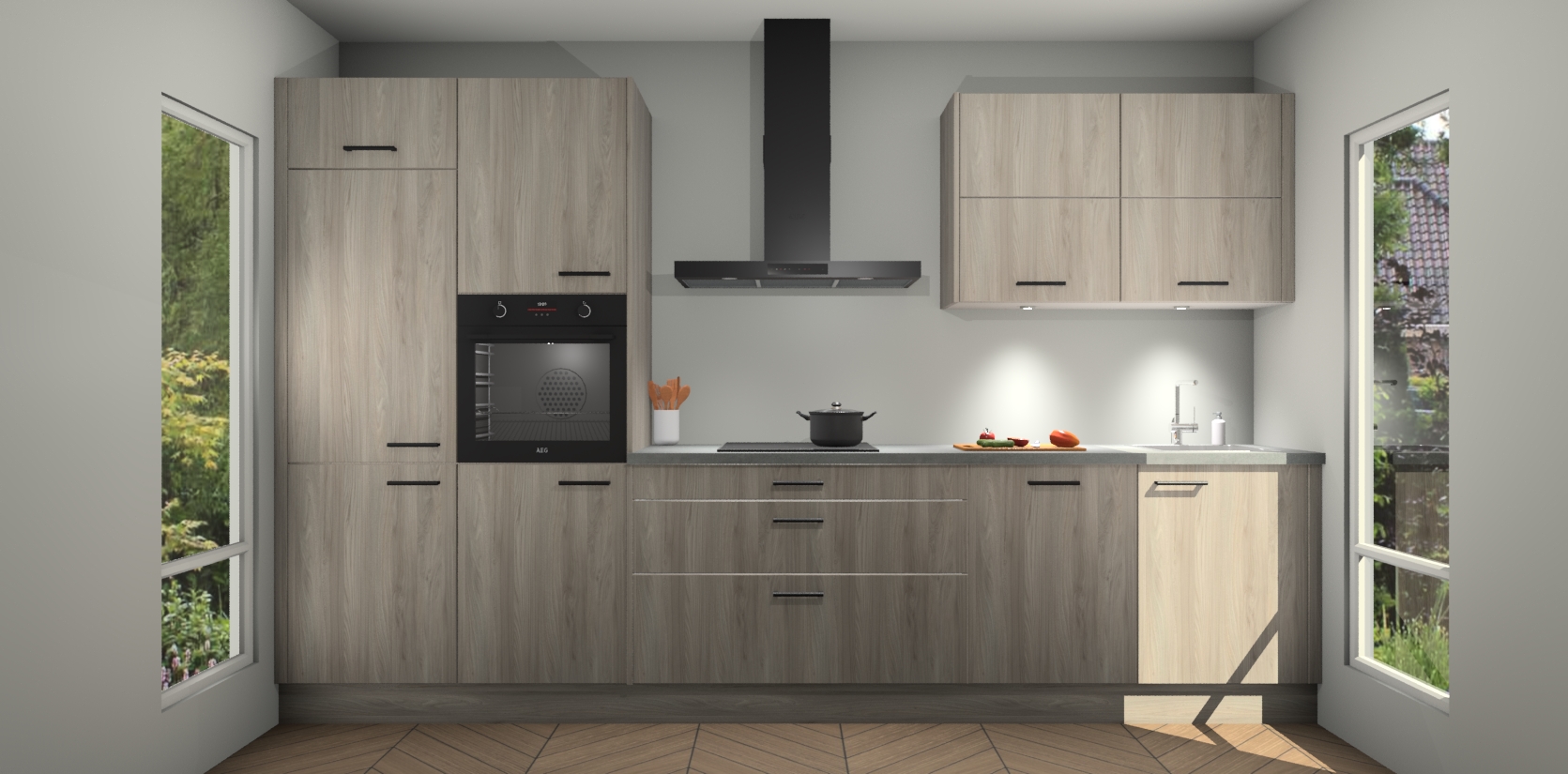 Maak kennis met de nieuwe Olm Keuken Parijs - de perfecte designcombinatie van gemak, moderne elegantie en ultramodern design. Met een gemakkelijk te reinigen Olm afwerking, zal de slankheid van deze keuken zeker een vleugje luxe toevoegen aan elke ruimte die hij inneemt.