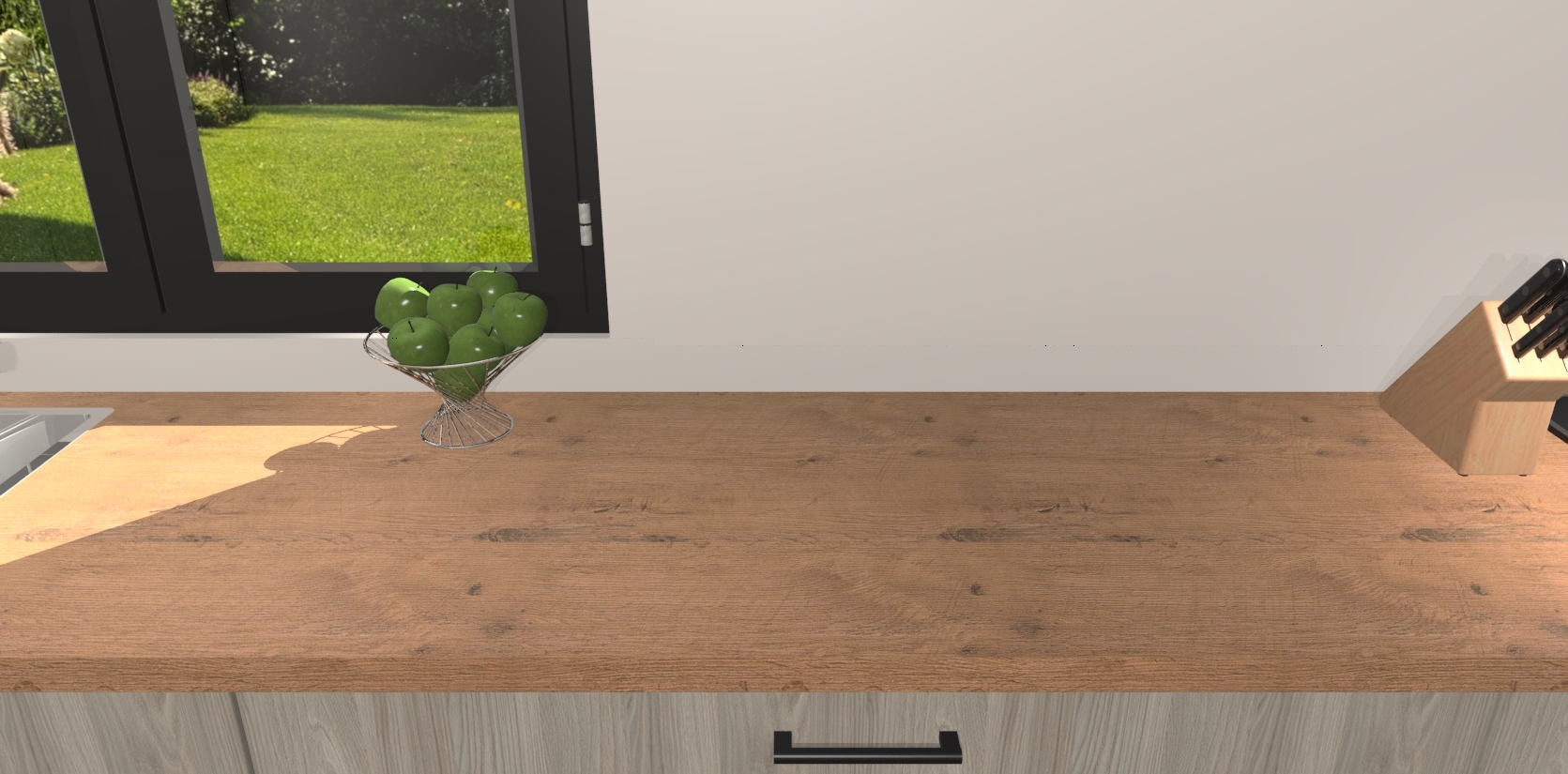- Bij een hoekwerkblad zijn de hoeken in gevreesd en op maat gemaakt