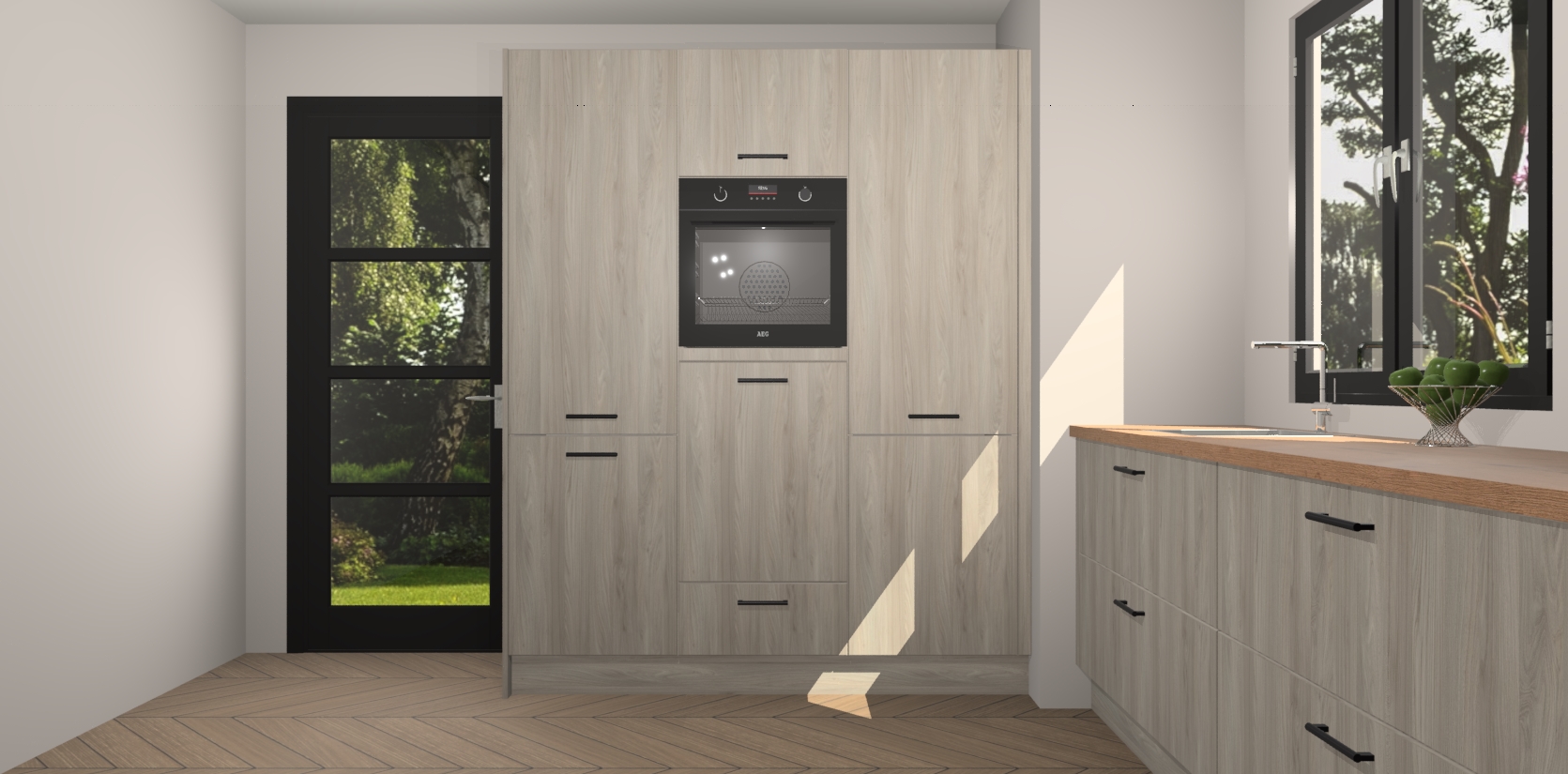 De softclose deuren openen en sluiten is ook heel eenvoudig - geniet van een moeiteloze keukenervaring, zelfs als er kinderen rondlopen. Voor extra gemak bij het plaatsen van uw bestelling bieden we ook een upgrade naar een kookplaat met geïntegreerde afzuiging.