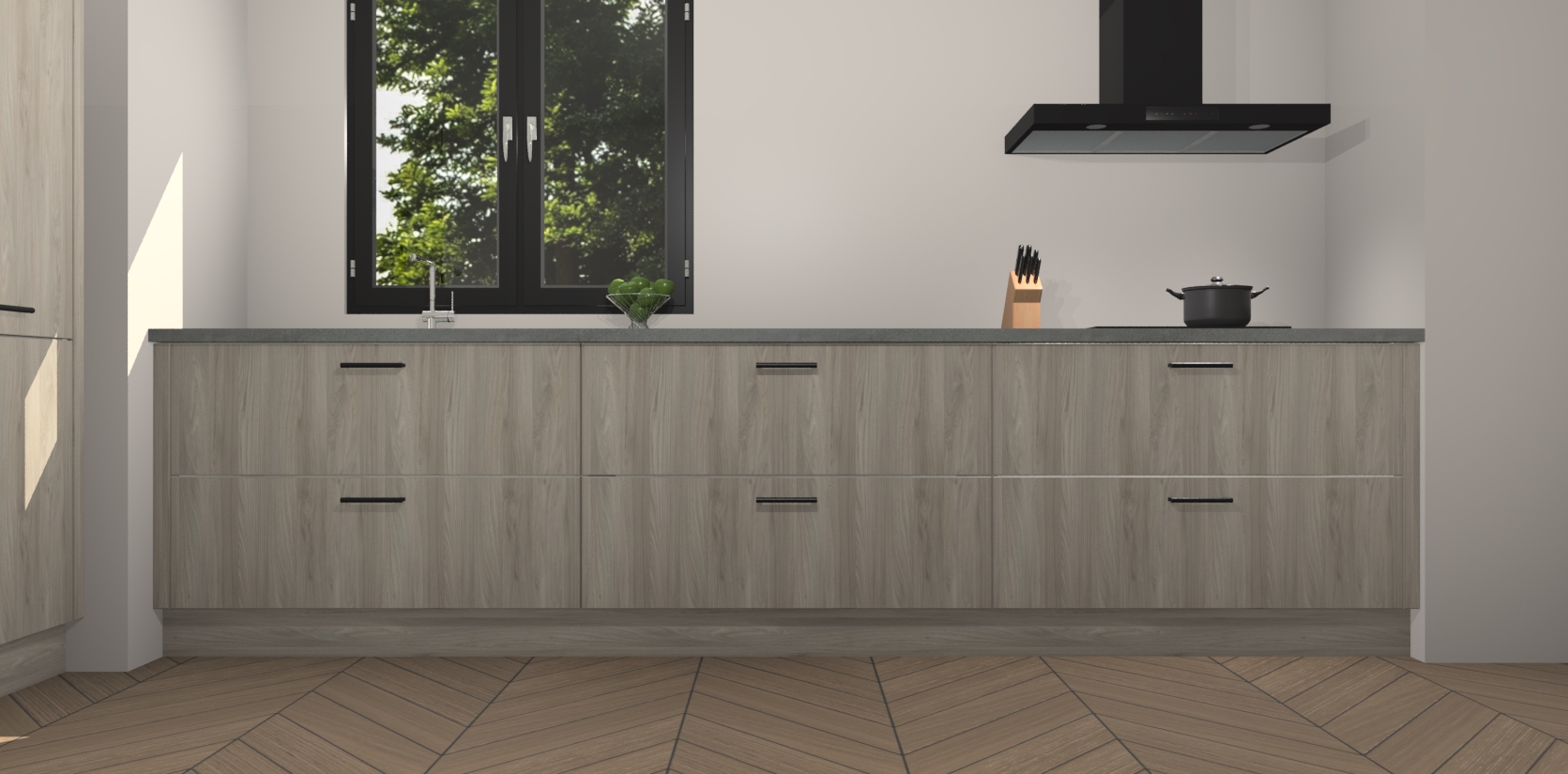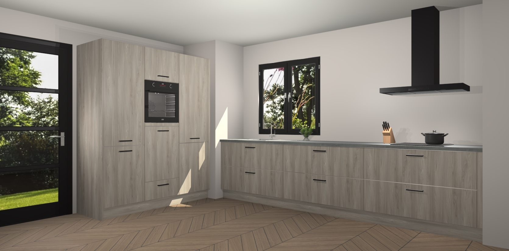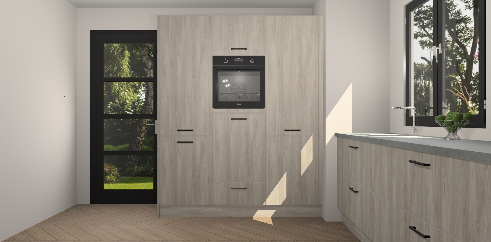 De softclose deuren openen en sluiten is ook heel eenvoudig - geniet van een moeiteloze keukenervaring, zelfs als er kinderen rondlopen. Voor extra gemak bij het plaatsen van uw bestelling bieden we ook een upgrade naar een kookplaat met geïntegreerde afzuiging.