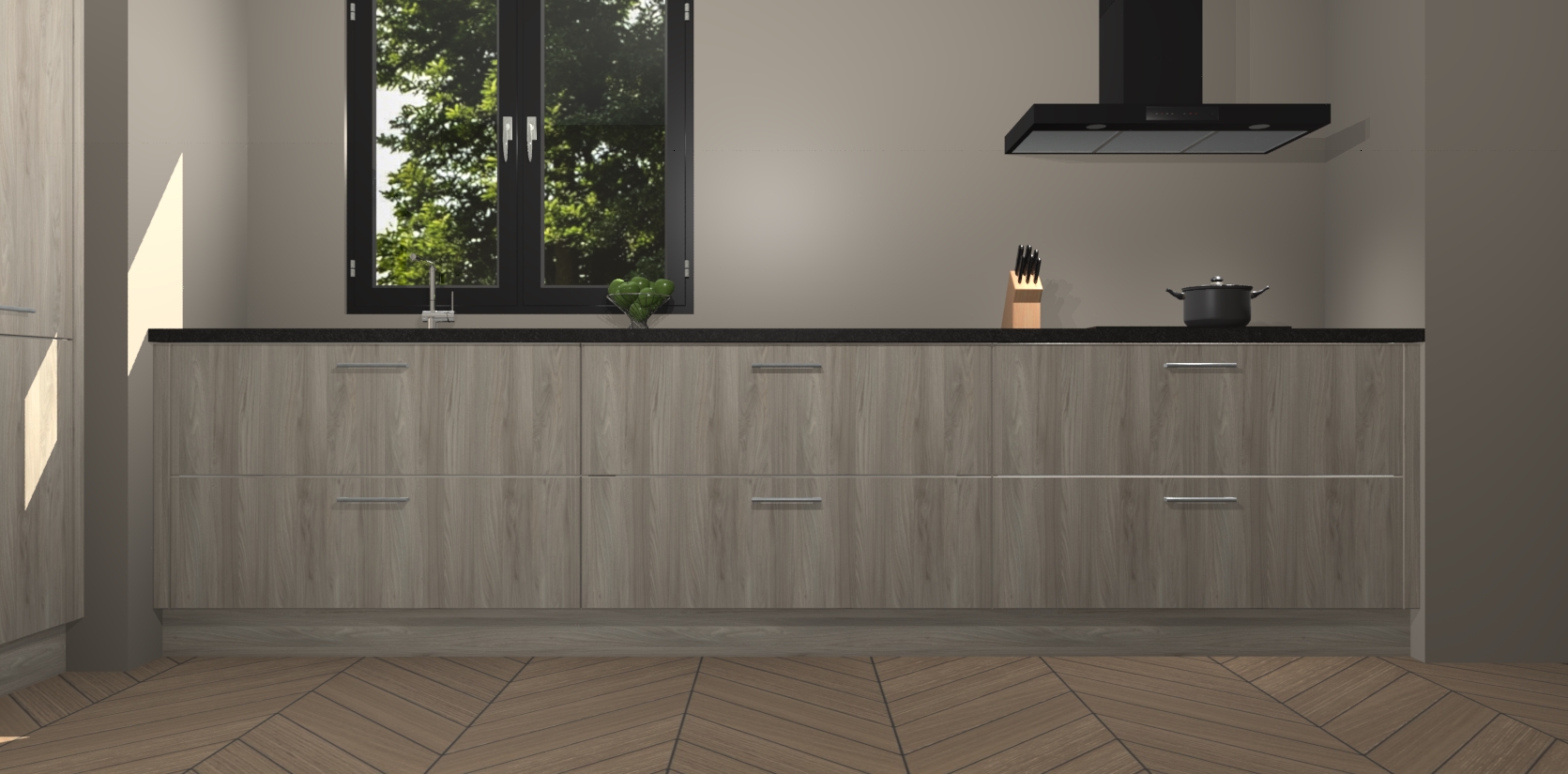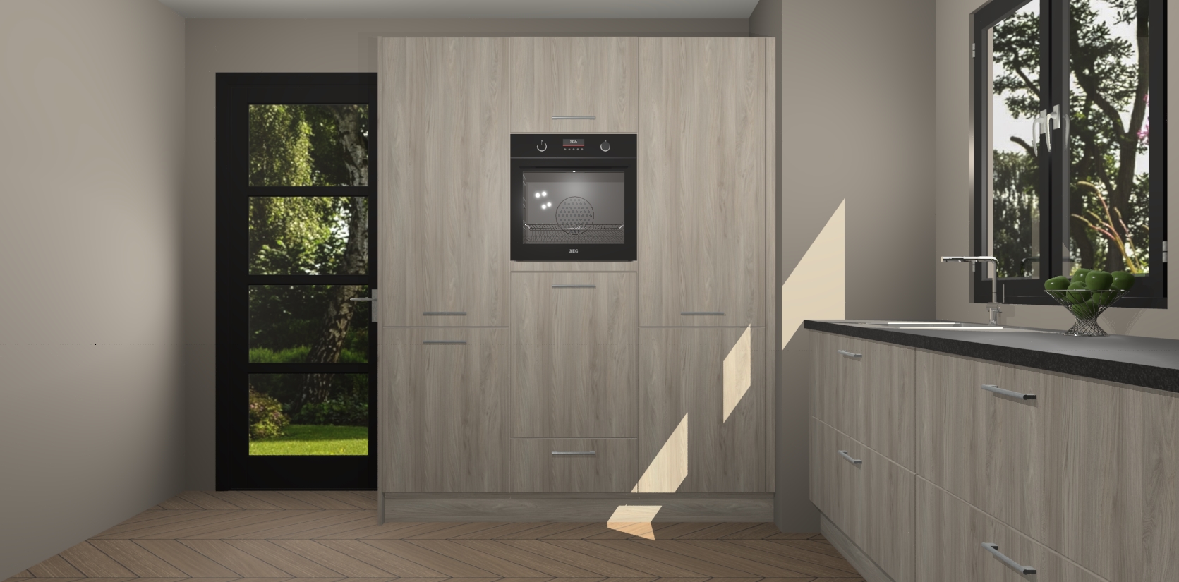 De softclose deuren openen en sluiten is ook heel eenvoudig - geniet van een moeiteloze keukenervaring, zelfs als er kinderen rondlopen. Voor extra gemak bij het plaatsen van uw bestelling bieden we ook een upgrade naar een kookplaat met geïntegreerde afzuiging.