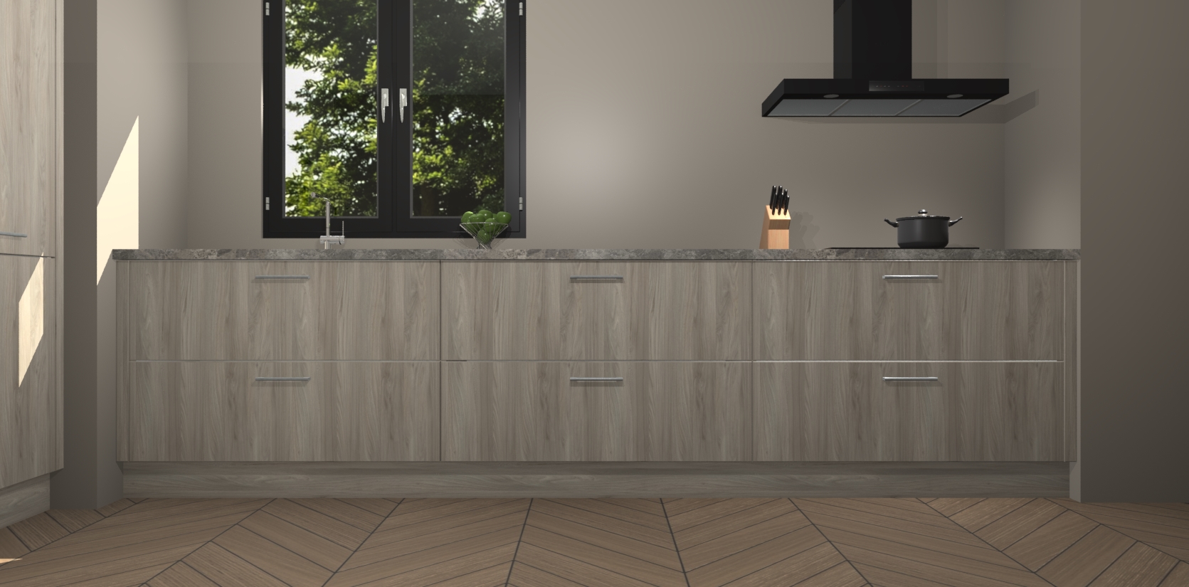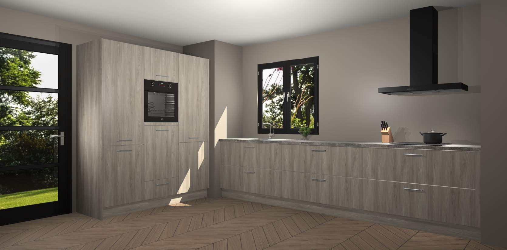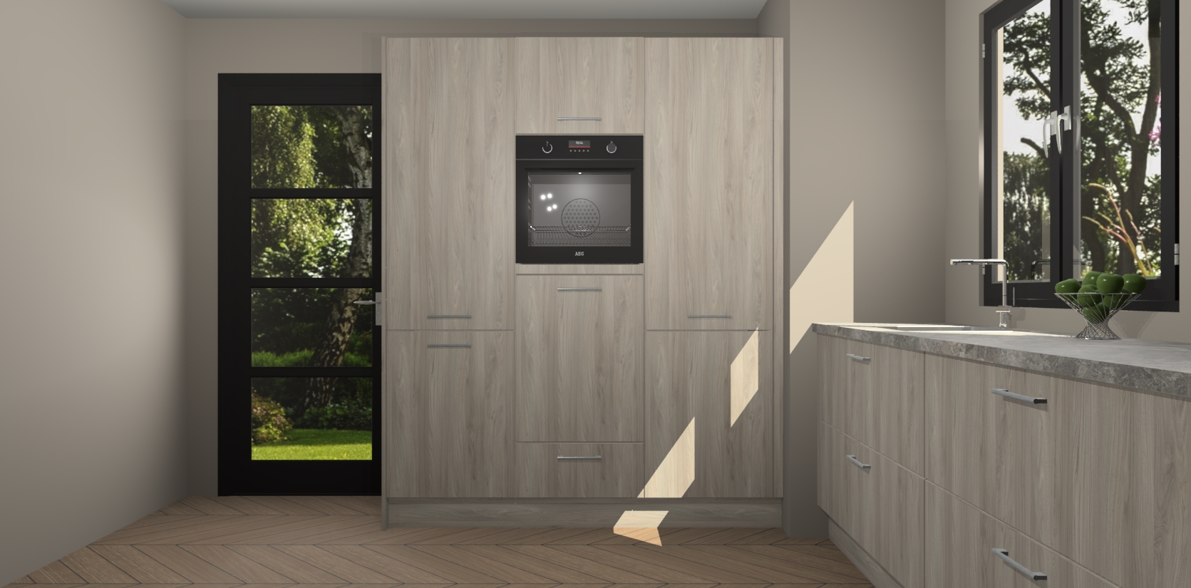 De softclose deuren openen en sluiten is ook heel eenvoudig - geniet van een moeiteloze keukenervaring, zelfs als er kinderen rondlopen. Voor extra gemak bij het plaatsen van uw bestelling bieden we ook een upgrade naar een kookplaat met geïntegreerde afzuiging.