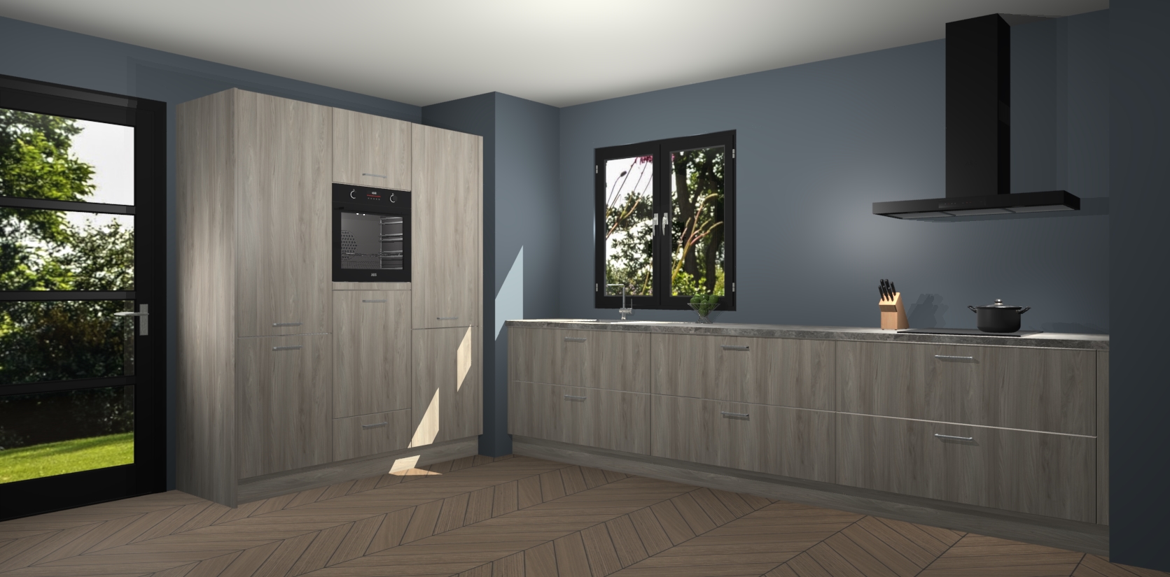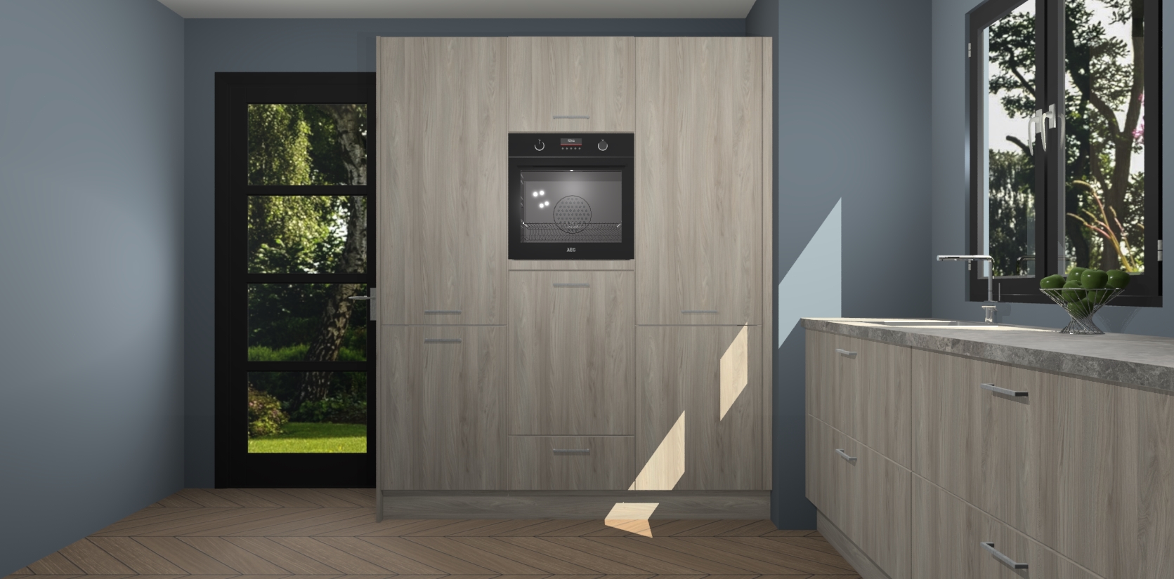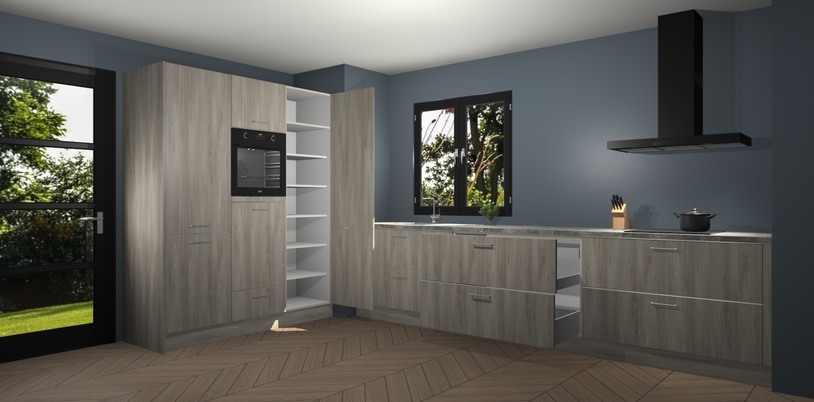 De softclose deuren openen en sluiten is ook heel eenvoudig - geniet van een moeiteloze keukenervaring, zelfs als er kinderen rondlopen. Voor extra gemak bij het plaatsen van uw bestelling bieden we ook een upgrade naar een kookplaat met geïntegreerde afzuiging.