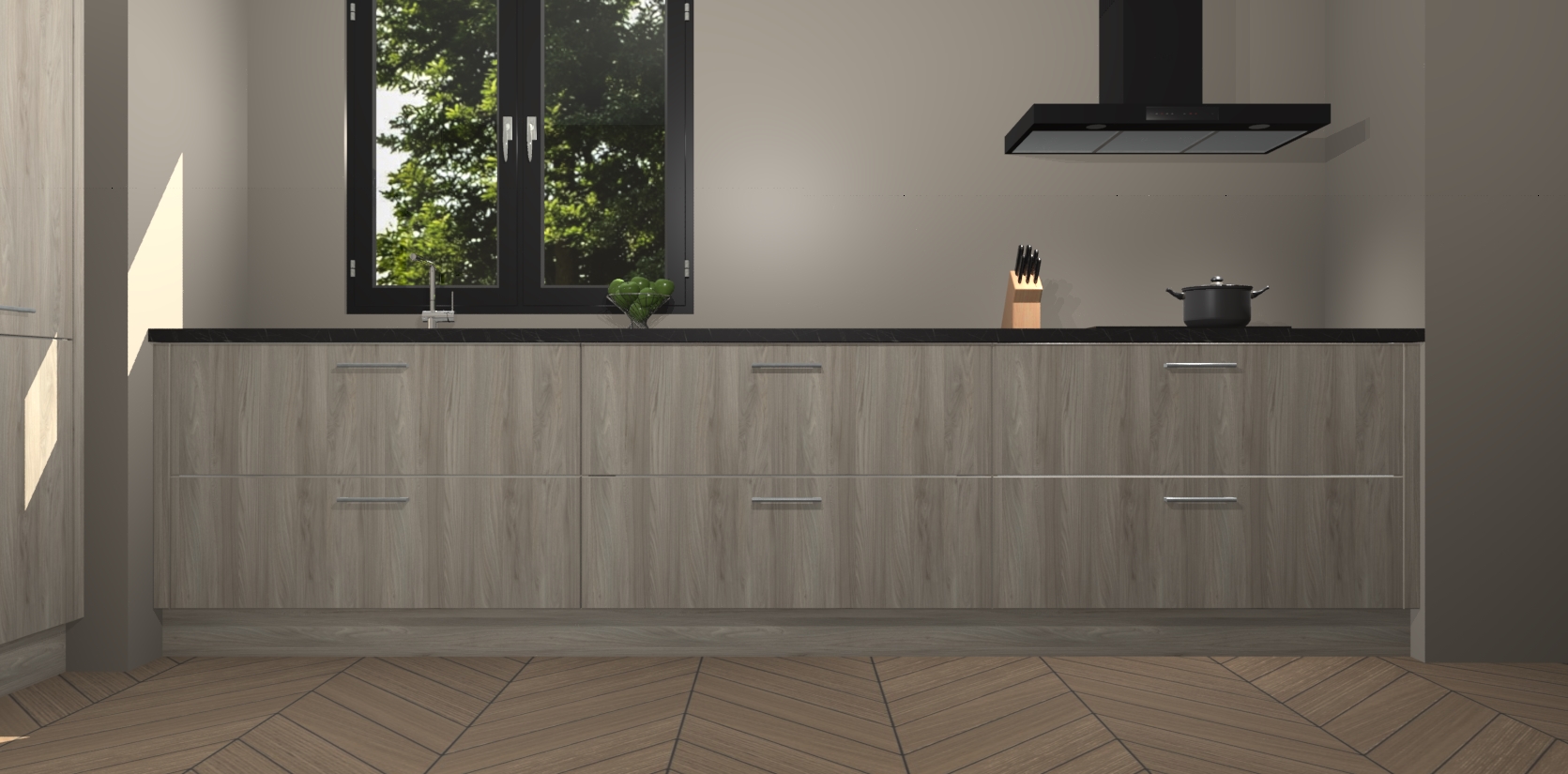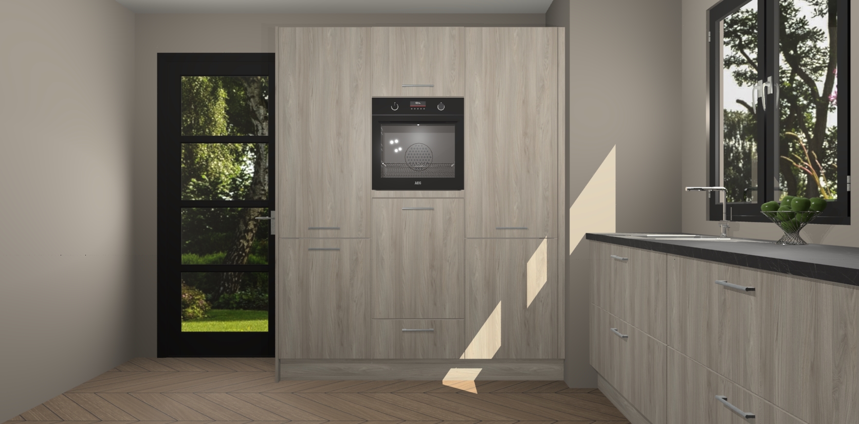 De softclose deuren openen en sluiten is ook heel eenvoudig - geniet van een moeiteloze keukenervaring, zelfs als er kinderen rondlopen. Voor extra gemak bij het plaatsen van uw bestelling bieden we ook een upgrade naar een kookplaat met geïntegreerde afzuiging.
