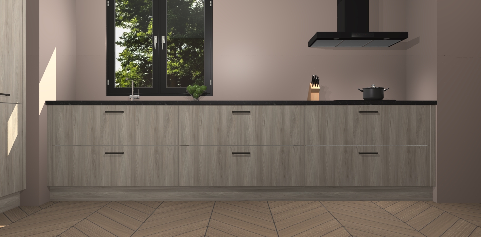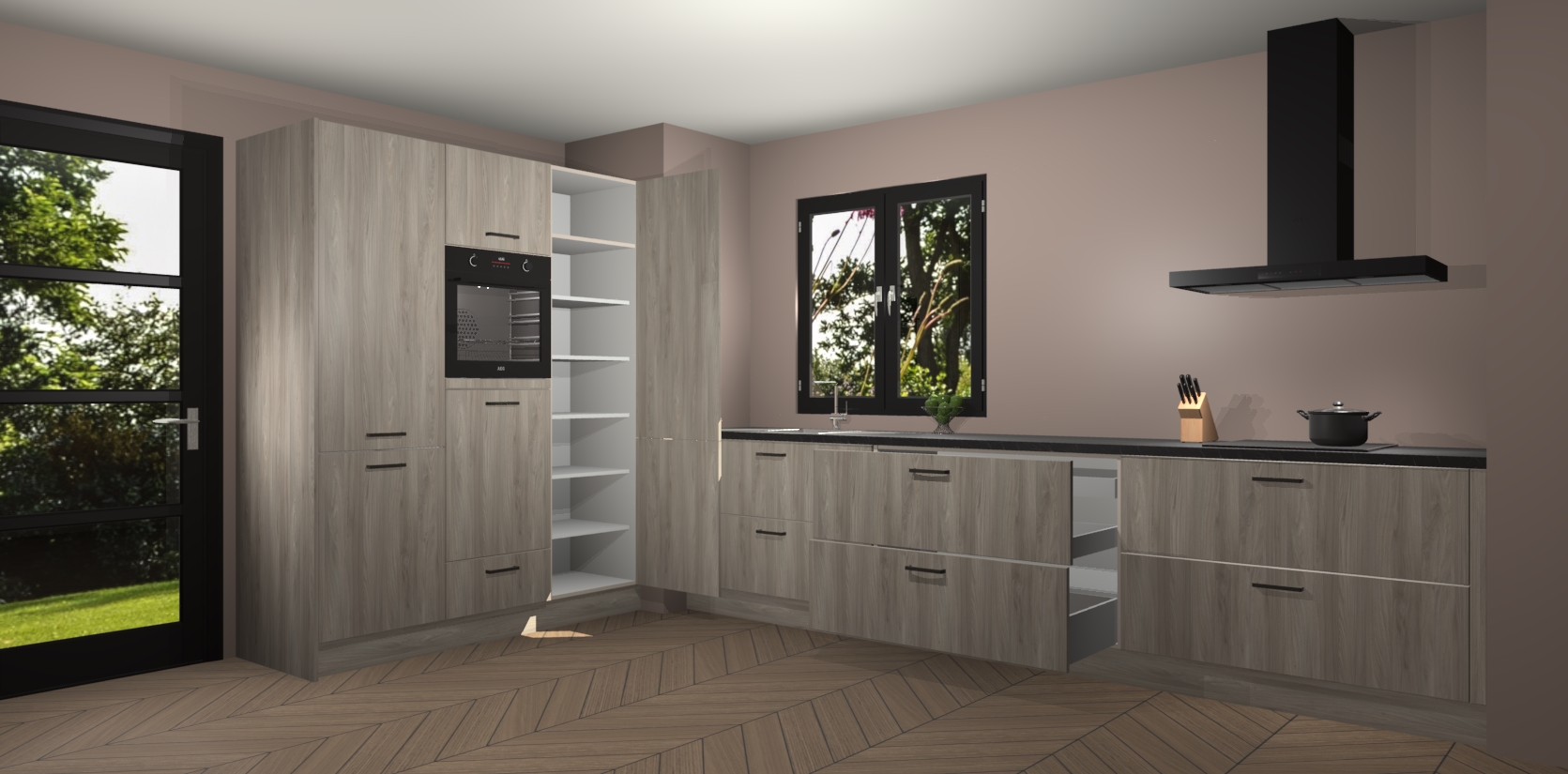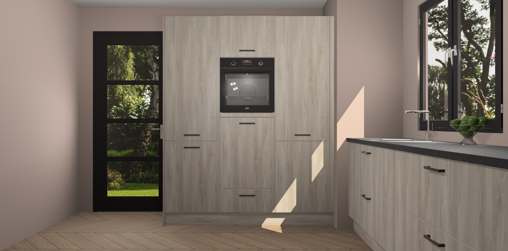 De softclose deuren openen en sluiten is ook heel eenvoudig - geniet van een moeiteloze keukenervaring, zelfs als er kinderen rondlopen. Voor extra gemak bij het plaatsen van uw bestelling bieden we ook een upgrade naar een kookplaat met geïntegreerde afzuiging.