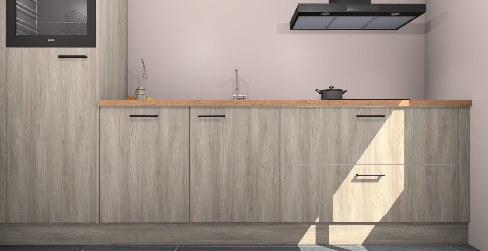 Inclusief plinten, stelpoten en werkblad