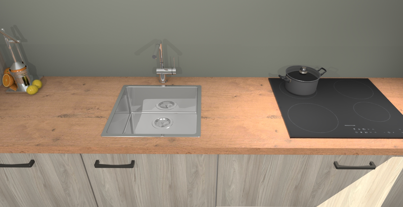 • Uitsparing van kookplaat, spoelbak en kraan dient u zelf te verzorgen.