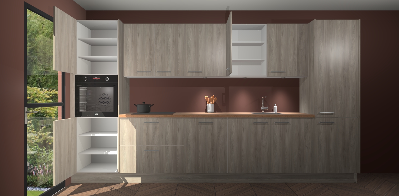 Dit is de perfecte keuken voor wie op zoek is naar een luxueuze stijl zonder zijn portemonnee te legen! Het chique ontwerp van de olm keuken Wels voegt dat vleugje verfijning toe aan elk huis. Het gemak van voorgemonteerde kasten bespaart u talloze uren tijd en energie, zodat u veel sneller dan verwacht kunt beginnen te genieten van uw prachtige nieuwe keuken. Bovendien bedraagt de levertijd slechts 7 weken.